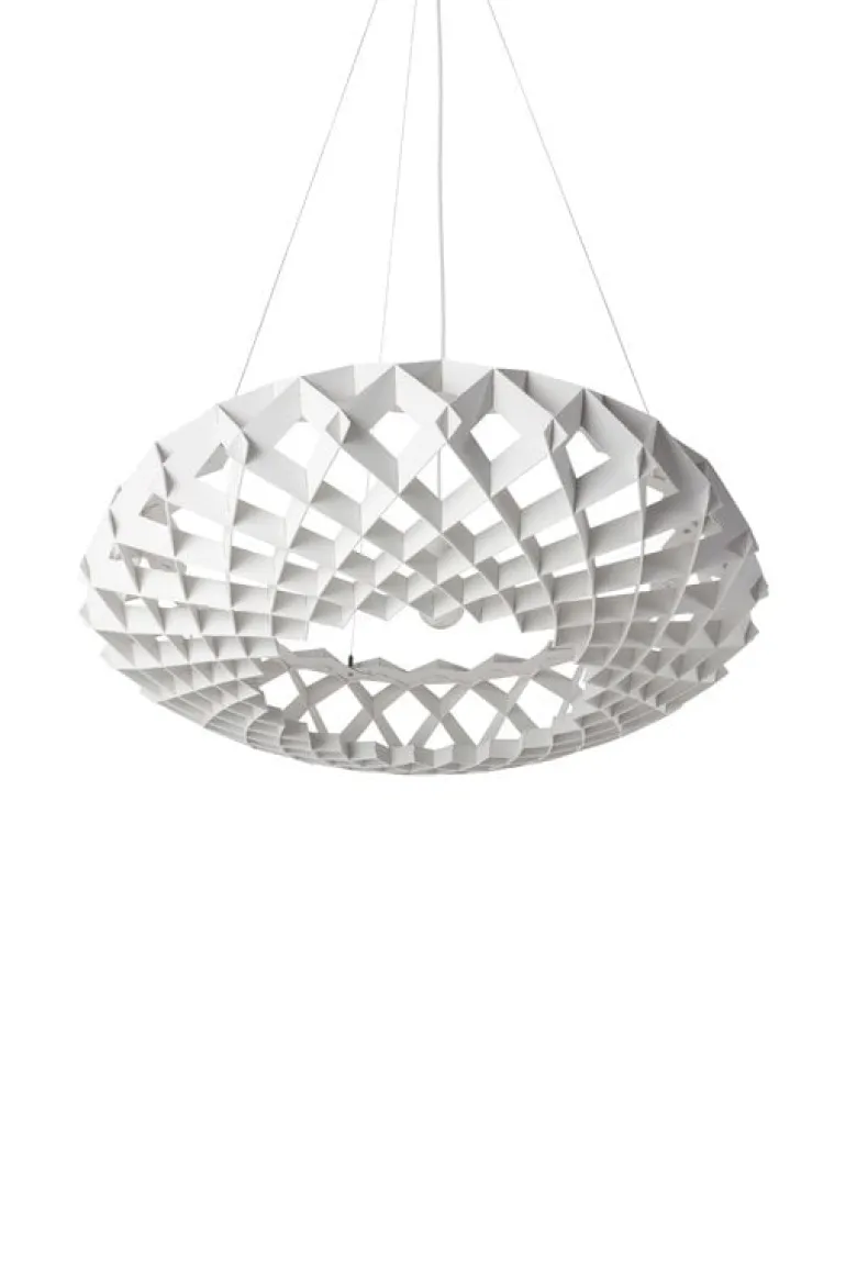 Pendellampan Pilke Signature 95 från Pilke Lights fyller varje rum med ett stämningsfullt sken. Som du kanske redan gissat utifrån namnet på lampan har pendellampan Pilke 95 en diameter på 95 cm, vilket gör att den passar perfekt i stora rum. Dess stora, men samtidigt luftiga design ser särskilt imponerande ut när den hänger över ett soffbord eller matbord.