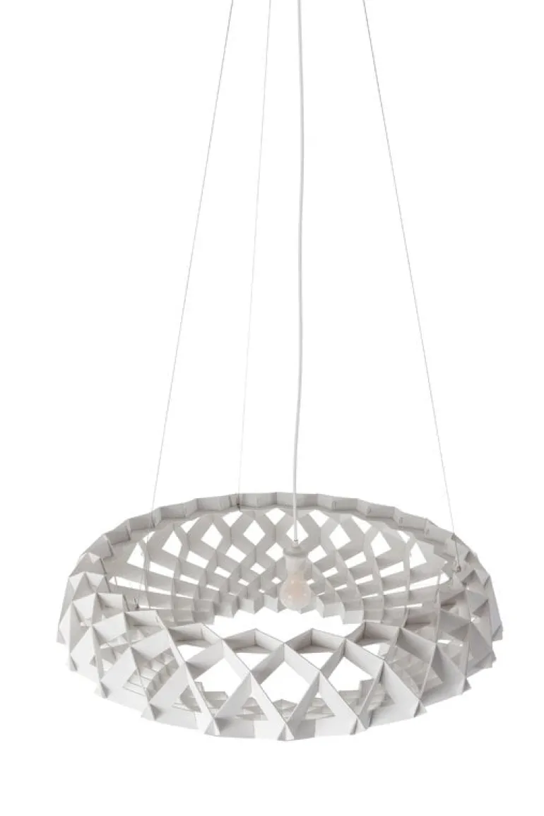 Pilke 95 ingår i den enkla men samtidigt dekorativa serien Pilke Signature Collection, formgiven av Tuukka Halonen. Pilke-lamporna är gjorda av björkplywood och är en underbar förening av teknik och tradition: Halonen hämtade inspiration till designen från finskt traditionellt trähantverk, men har sedan tagit hjälp av moderna tillverkningsmetoder och material. Lamporna, en modern tappning av spontverk, kännetecknas av sina kristalliknande mönster som filtrerar ljuset på ett behagligt sätt och kastar vackra skuggor på väggarna och i taken. Alla Pilke-trälampor formges och tillverkas för hand i Finland.