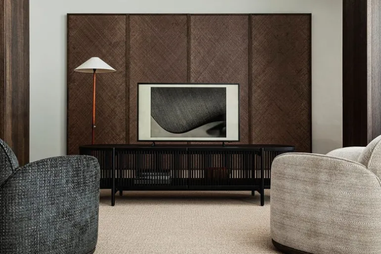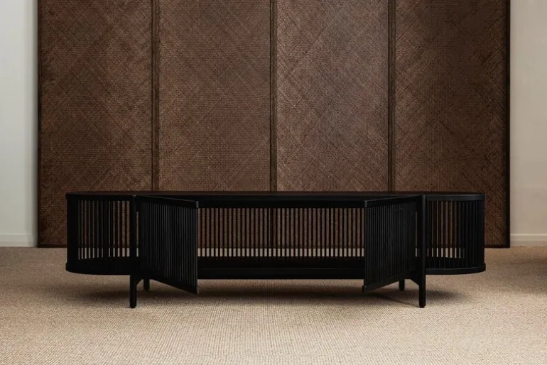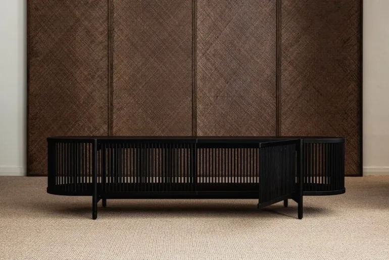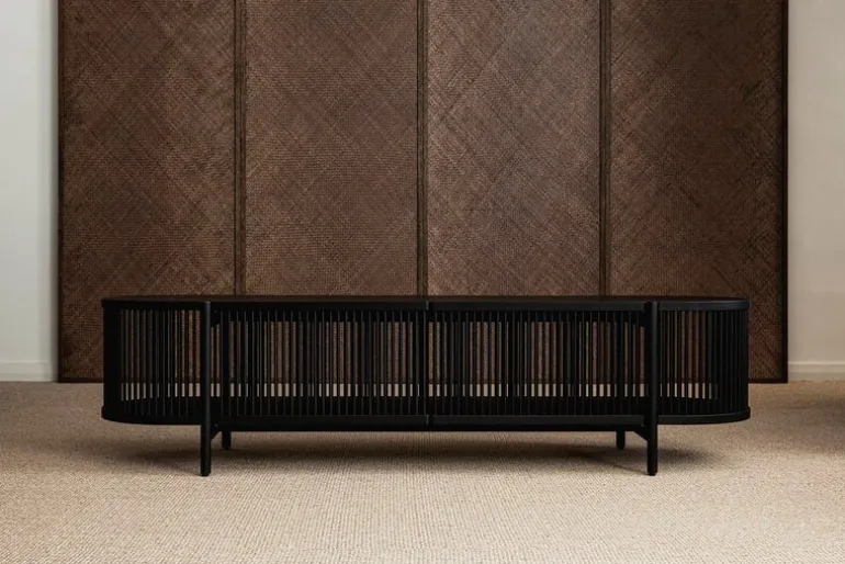 Bastone sideboard är ett tidlöst och skulpturalt konstverk som formgivits av trädesignern Antrei Hartikainen för finska Poiat. Sidorna i det massiva sideboardet är gjorda i trälameller, de filtrerar ljuset in i möbeln och gör att den kastar vackra skuggor omkring sig. De tjocka hyllorna och den massiva överdelen ger en stabil struktur. De utgör också en vacker kontrast till de transparenta sidorna. Bastone är en förtrollande vacker miljö för dina favoritsaker, oavsett rum. Fyll den med böcker och prydnadsföremål i vardagsrummet eller använd den för att förvara porslin i köket. Tack vare den öppna strukturen, kan du också placera en krukväxt eller en snygg lampa i den.