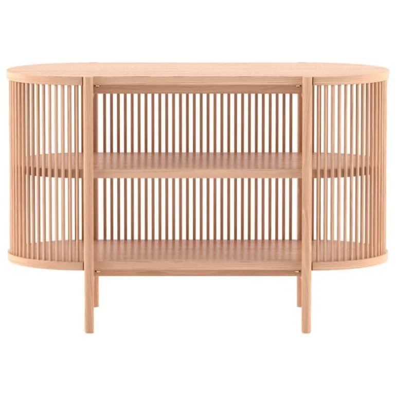 Petit Bastone är en mindre version av det tidlösa och skulpturala sidobordet som designades av mästaren inom skåpmakeri, Antrei Hartikainen. Det massiva sidobordet tillverkas av det finska varumärket Poiat och är gjort med trälameller som filtrerar ljuset in i möbeln och gör att den kastar vackra skuggor omkring sig. De tjocka hyllorna och den massiva överdelen ger en stabil struktur och är en vacker kontrast till de halvtransparenta sidorna.