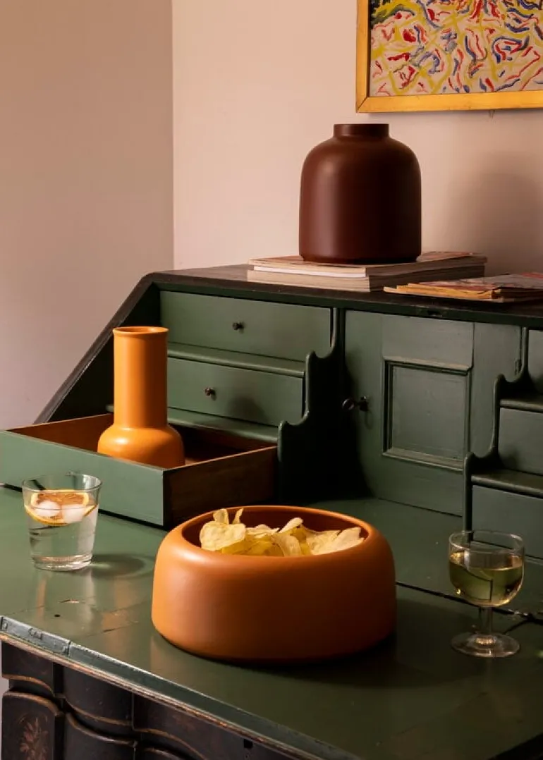 De charmiga nyanserna av Raawiis Omar-vas skapar en vacker kontrast när du placerar en färgglad blombukett i den, men vasen ser också imponerande ut när den är tom – eller så kan du hitta ett helt oväntat användningsområde för den! Designern Omar Sosa har inte designat objekten i sin namngivna kollektion för bara ett specifikt syfte. Istället vill han att människor ska hitta nya sätt att använda dem. De kontrasterande färgerna och formerna gör Omar-vasen och andra föremål i serien lätta att mixa och matcha. Omar-kollektionen är designad för lek och experiment.