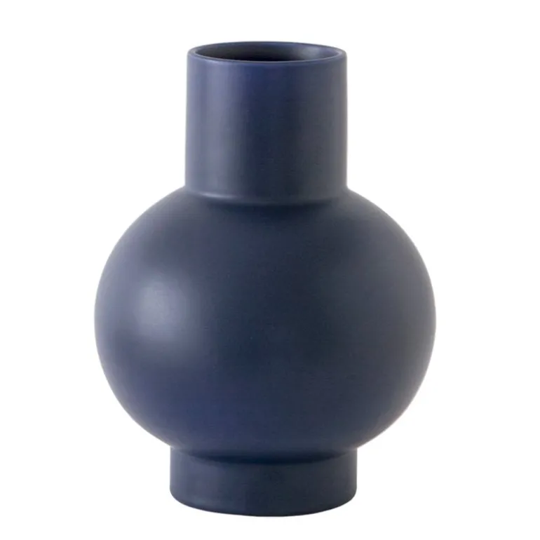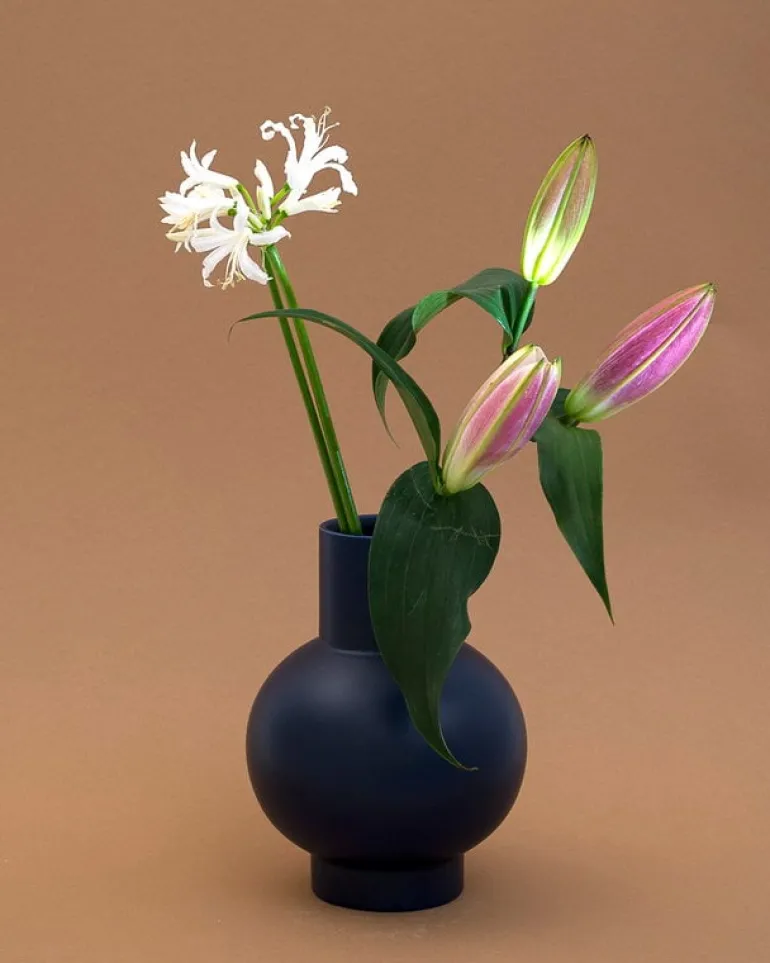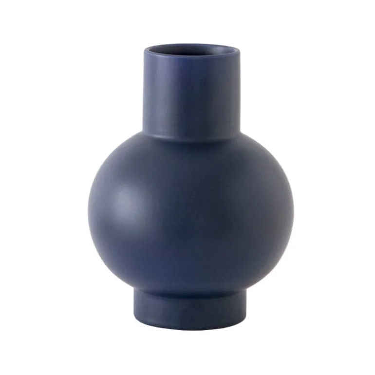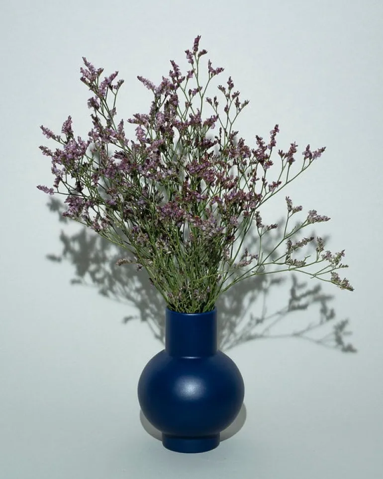 Vasen från Raawii Strøm har en simpel skulptural form vilken är idealisk för flera olika blomuppsättningar och skapar en rolig kontrast mot blommornas delikata natur. Den minimalistiska vasen ser med sin runda bas och cylindriska hals oväntat uppmuntrande ut även utan blommor i.