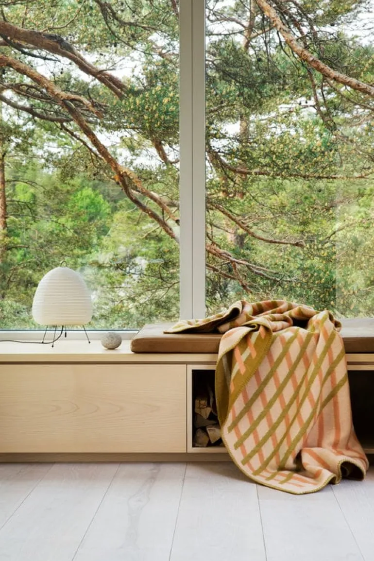 Filten Bilsett, från Røros Tweed, är designad av Hallgeir Homstvedt och är en fröjd för alla sinnen. Det säregna mönstret är inspirerat av fenomenet Moiré, som kan ske när två likartade mönster läggs över varandra och skapar en känsla av rörelse. Pläden Bislett har fått sitt namn från den kända idrottsarenan i Oslo, som formgivaren har en personlig koppling till.