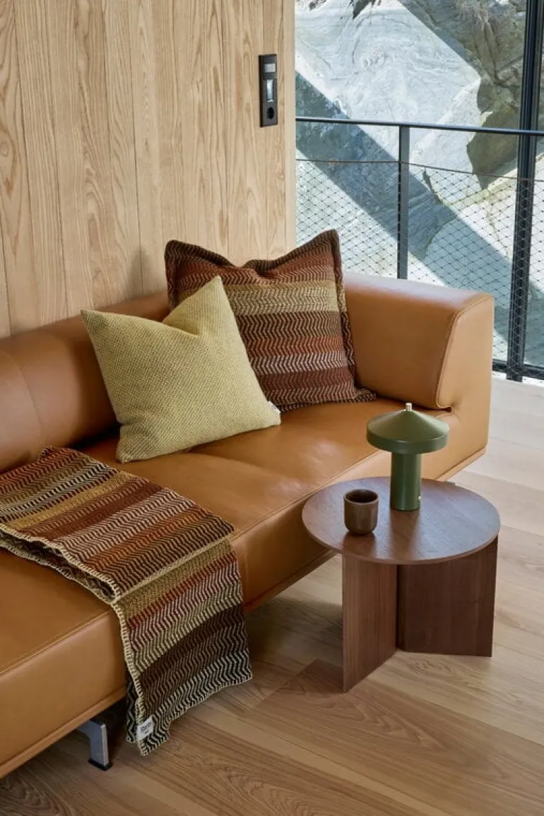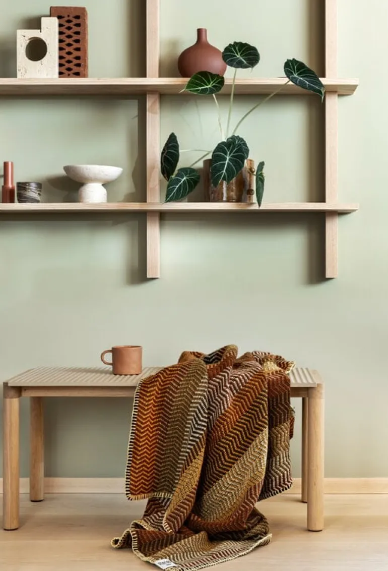Røros Tweeds filt Fri är precis vad alla som söker efter mysiga, högkvalitativa skandinaviska textilier behöver. Med serien Fri ville formgivarna Torbjørn Anderssen och Espen Voll ge en ny tolkning av utseendet hos traditionella dukar, som i Norge kallas för løpere. Designduon omformade det repetitiva färgmönster som är typiskt för originaldesignen och skapade ett nytt zickzack-motiv. Med sin mjuka visuella effekt drar Røros Tweeds filt Fri dig till sig så att du vill känna på den behagliga ytan och krypa upp med din favoritbok.