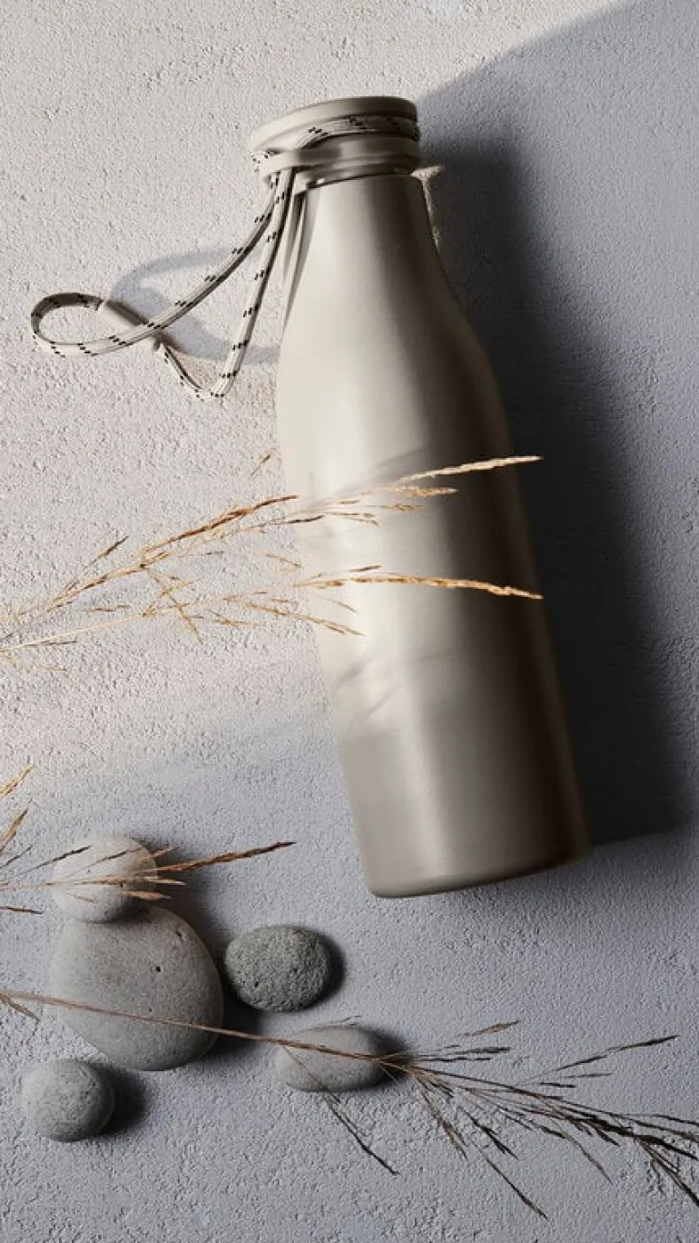 Rosendahls termosflaska Grand Cru är ett grönt alternativ till engångsflaskan. Den stiliga flaskan passar för en mängd olika tillfällen: den håller ditt kaffe varmt på stressiga morgnar, men du kan också ta med den på en löprunda eller en vandring i skogen. Den halvliters stora termosflaskan har ett praktiskt skruvlock och en användbar rem. Det hållbara materialet säkerställer att vätskor inte läcker ut ur drickflaskan.