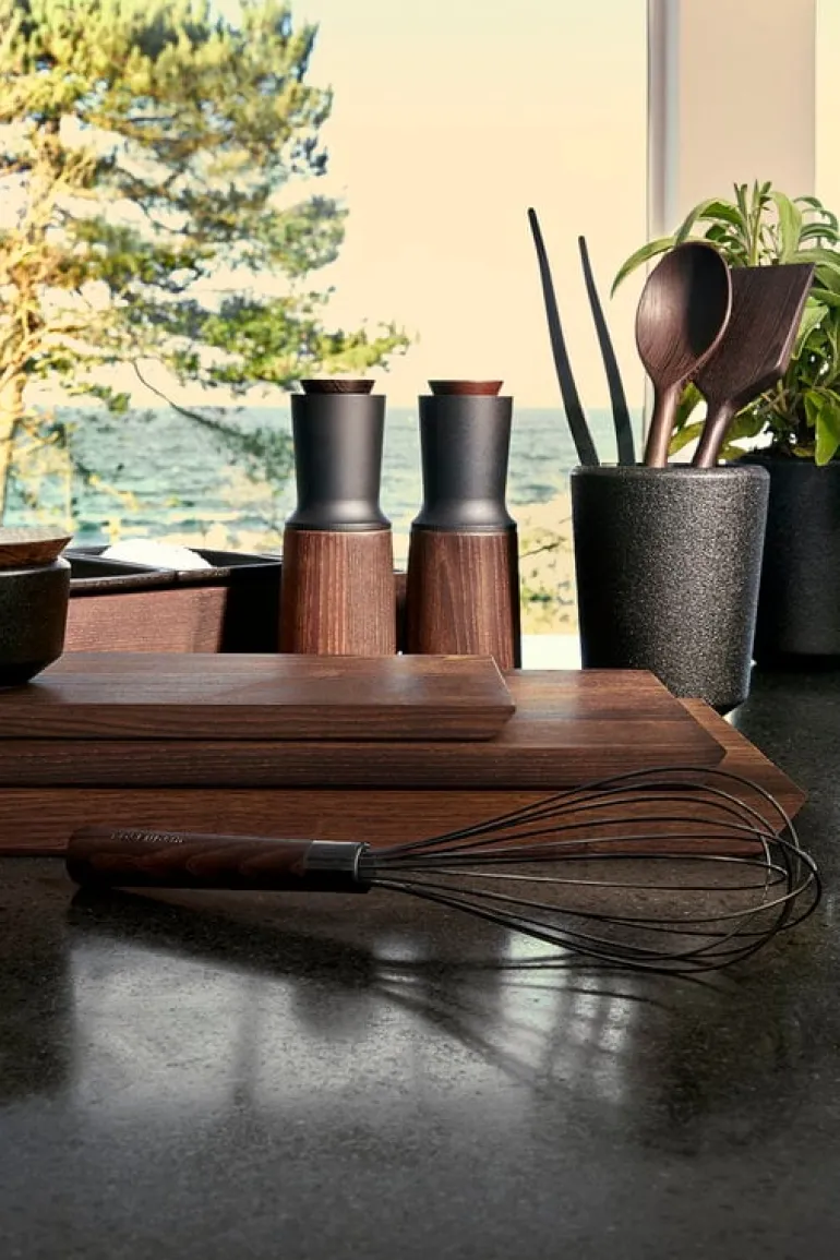 Rosendahls slev RÅ passar lika bra till matlagning som till servering av mat. Askträet är värmebehandlat, vilket gör träsleven till ett tåligt köksredskap som håller länge. Den mörka ytan livas upp av den naturliga ådringen.