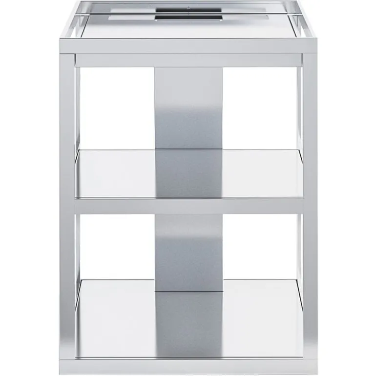 Open Kitchen ram 50 från Röshults är utformad för att rymma en del i modul-kollektionen. De stadiga hyllorna erbjuder förvaringsutrymme för grillredskap och serviser i ditt utekök.