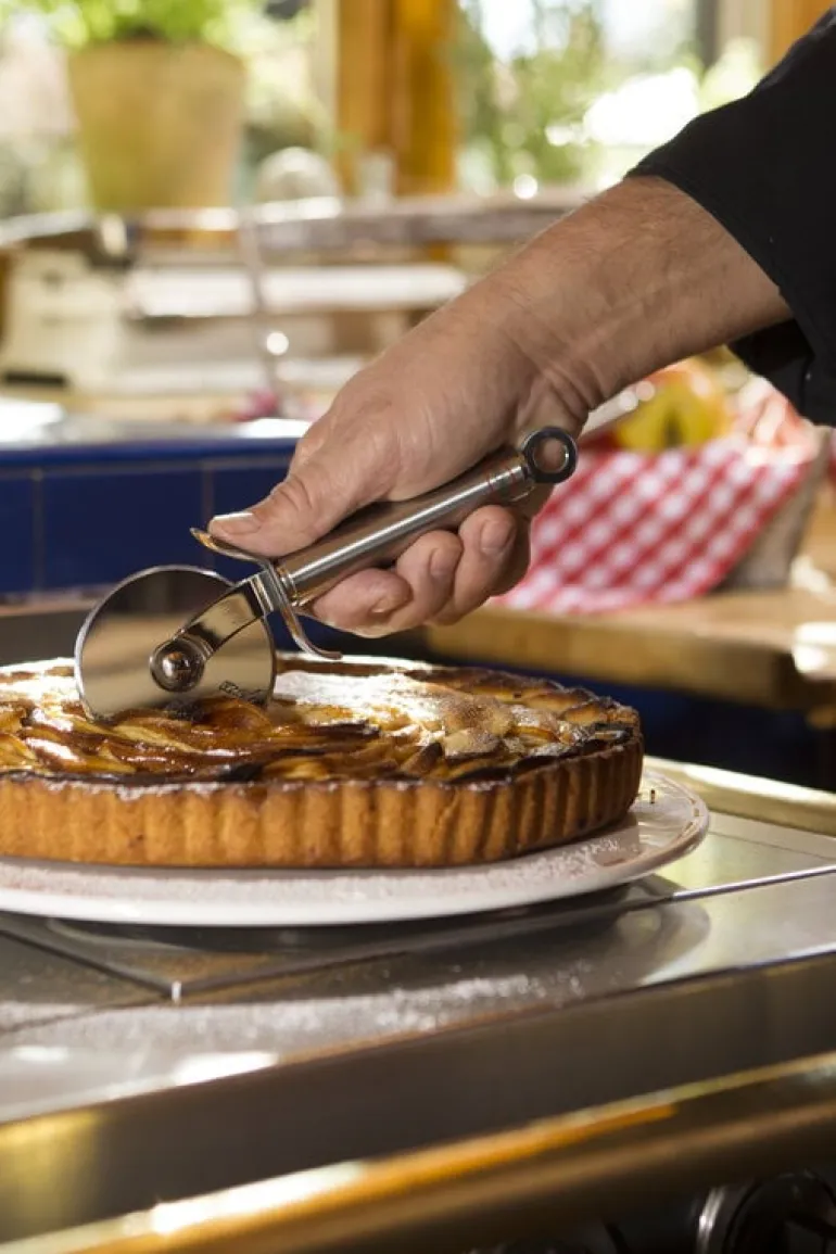 Rösles pizzaskärare gör pizzakvällarna ännu bättre, eftersom du enkelt kan skära upp din favoriträtt i perfekta bitar. Den här allsidiga skäraren är tillverkad i rostfritt stål och kan användas till mycket mer än bara pizza – du kan även skära pajer och andra maträtter med den, både söta och salta. Smaklig måltid!