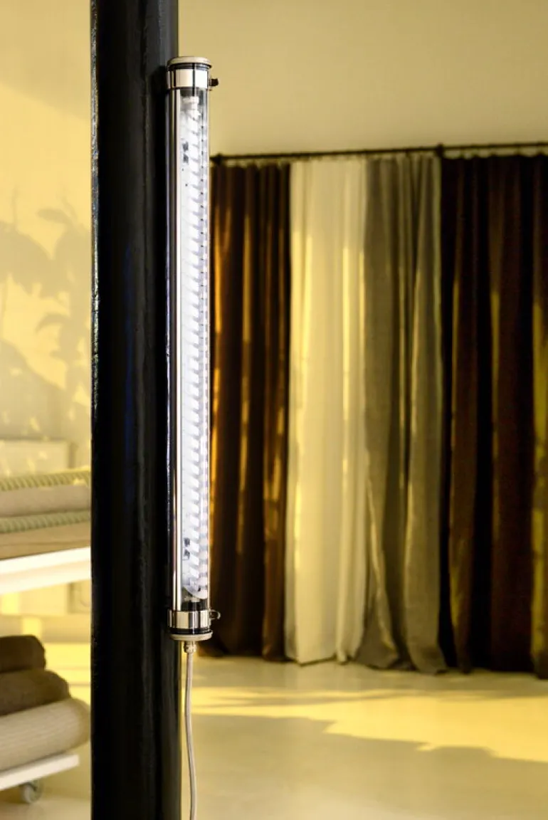 Lampan kan dimmas med hjälp av Casambi-smartphoneappen, vilket gör att du kan växla mellan starkt arbetsljus och mjukare allmänbelysning. Tack vare deras vattentäta design kan Elgar-lamporna också användas i badrum eller utomhusområden, och de ser bra ut både individuellt och i grupper. Lampan tillverkas i Châtillon-sur-Saône, Frankrike.