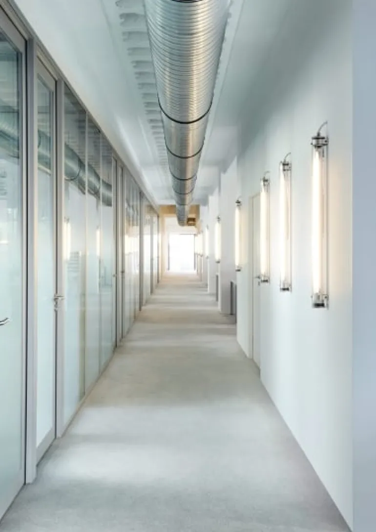 Sammodes vägglampa Elgar Casambi har en LED-rör ljuskälla och lutande lameller som ger ett mjukt ljus för både inomhus- och utomhusmiljöer. De små metallamellerna ger ljuset ett vackert, bländfritt sken. Fast installation på vägg.