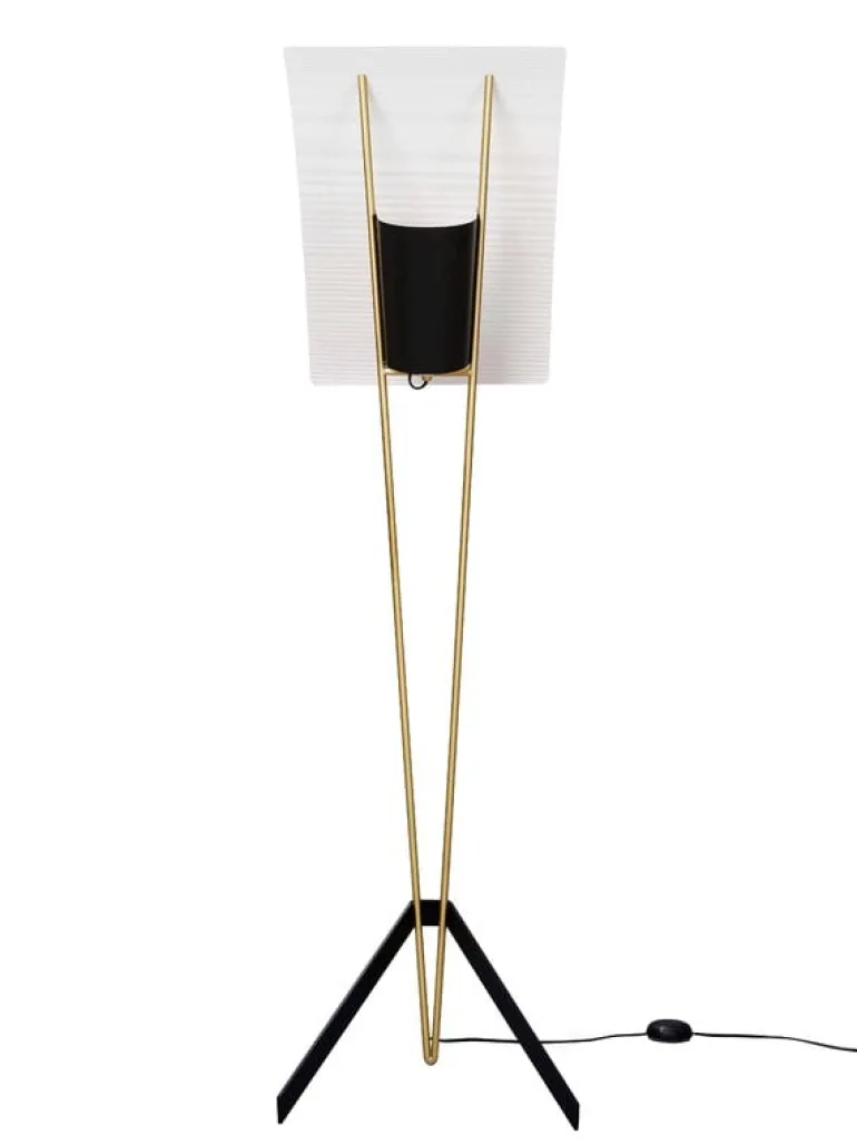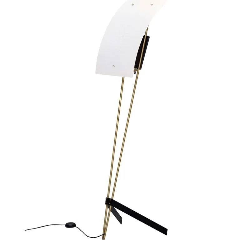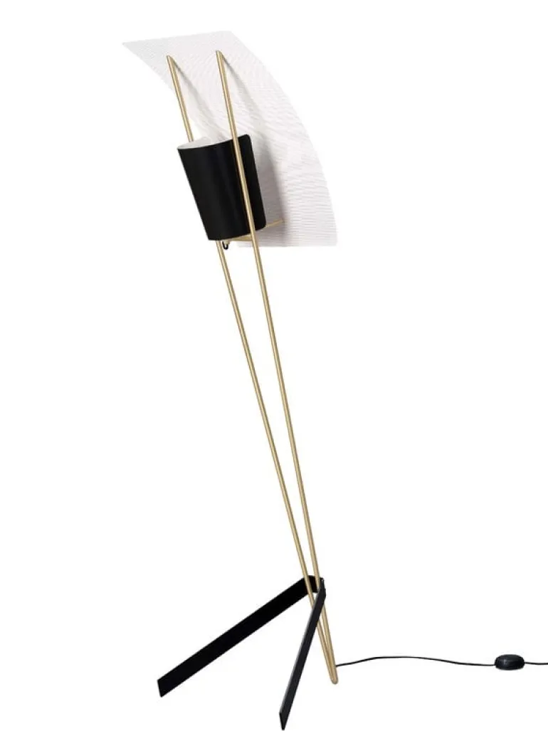 Golvlampan G30 från Sammode är ett mästerverk signerat Pierre Guariche från sent 1950-tal. Utseendet på den dimbara armaturen domineras av eleganta ben och en tvådelad skärm, vars form har gett lampan dess smeknamn: The Kite. Den stora perforerade skärmen är inte bara estetisk, utan har även en funktion som garanterar ett behagligt och indirekt sken, typisk för Guariche-armaturer. Det gör G30-lampan till ett utmärkt val för stämningsbelysning i både privata hem och offentliga utrymmen. G30-golvlampan tillverkas i Sammodes egen fabrik i Châtillon-sur-Saône, i nordöstra Frankrike.