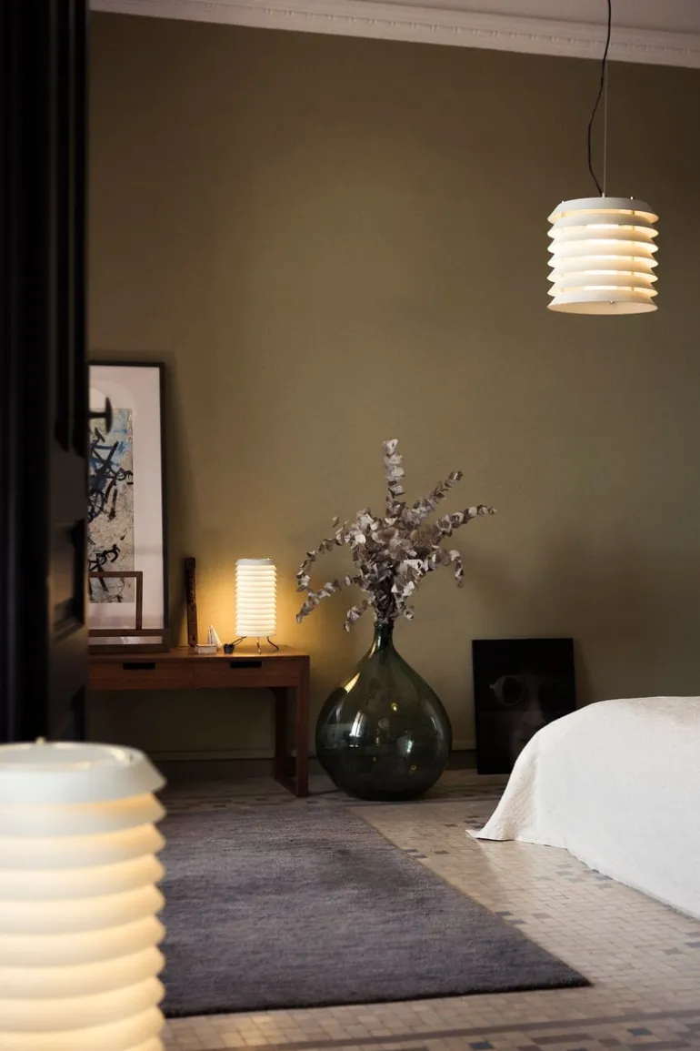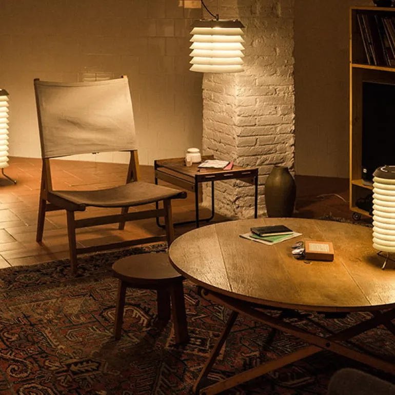 Santa & Cole har lanserat en nyutgåva av de tidlösa Maija Mehiläinen-lamporna, designade av Ilmari Tapiovaara 1955. Den finska formgivaren hämtade inspiration till bords-, pendel- och golvlamporna från Waldemar Bonsels barnbok Biet Majas äventyr (Maija Mehiläinen på finska), vilket tydligt framgår av den distinkta, bikupeliknande formen. Lamporna, som består av metallskivor staplade ovanpå varandra, filtrerar ljuset på ett vackert sätt och skapar en behaglig atmosfär. Maija-lamporna ingår i det spanska märkets Design Classics kollektion och finns i vitt och i den ursprungliga färgtonen nude rose.