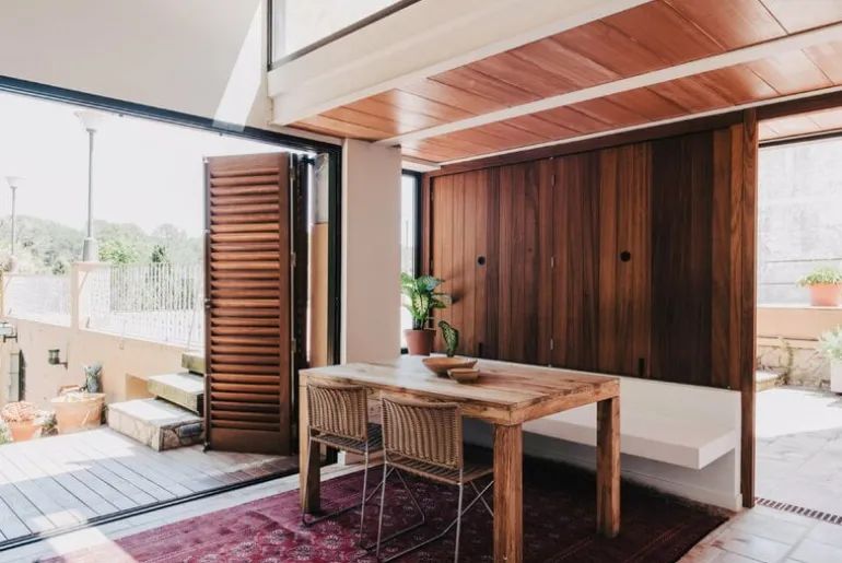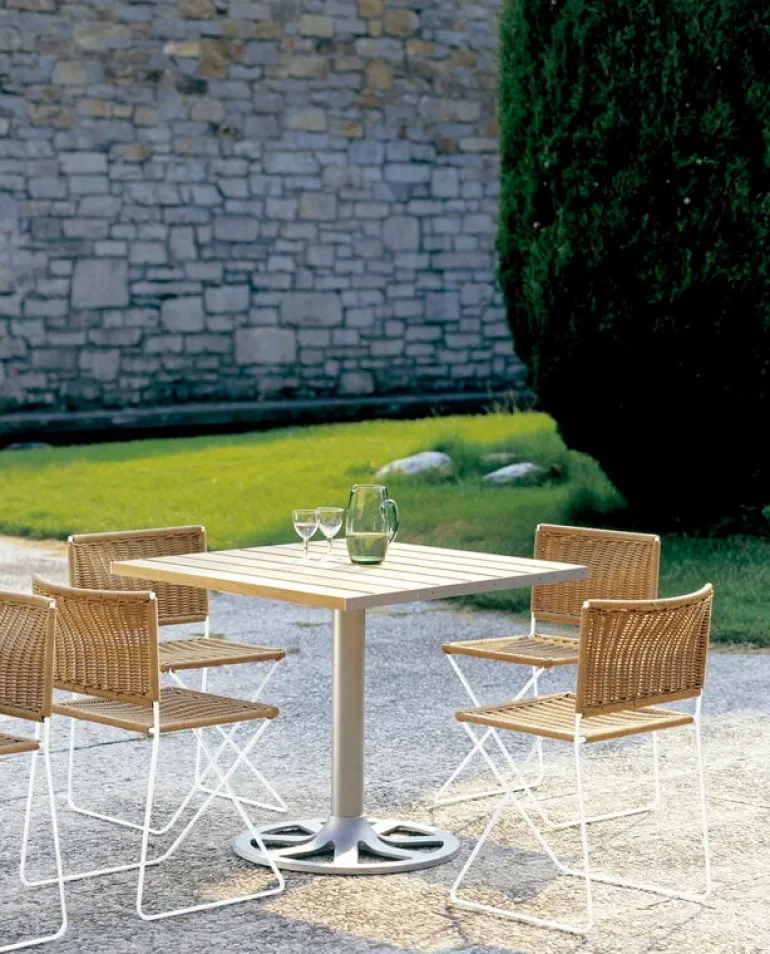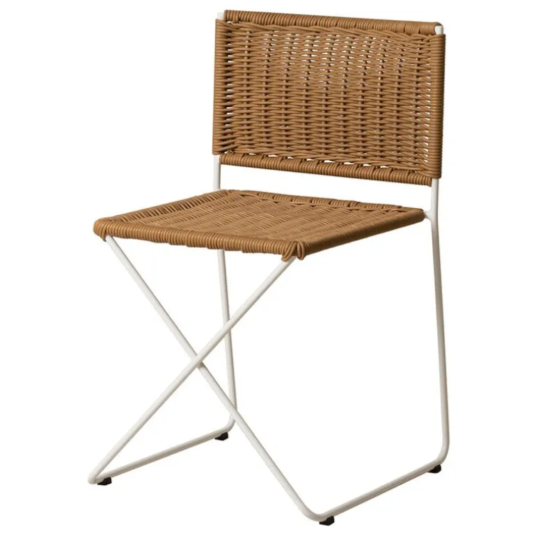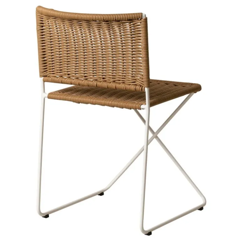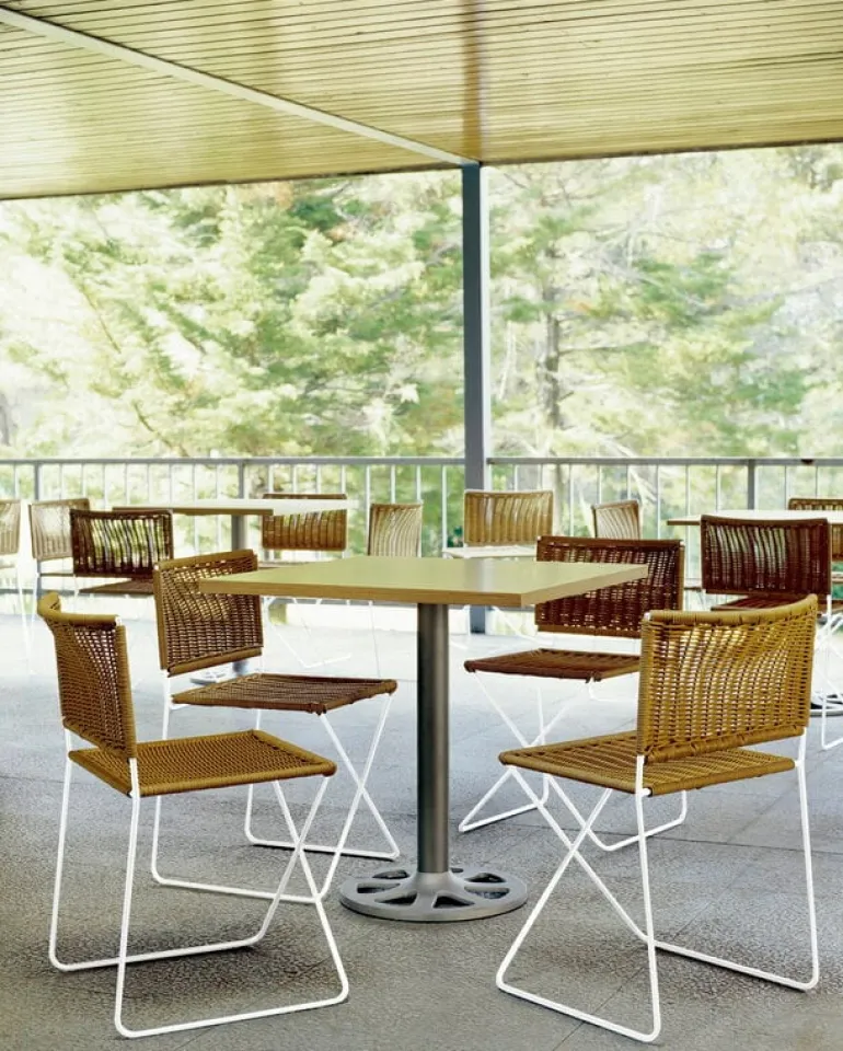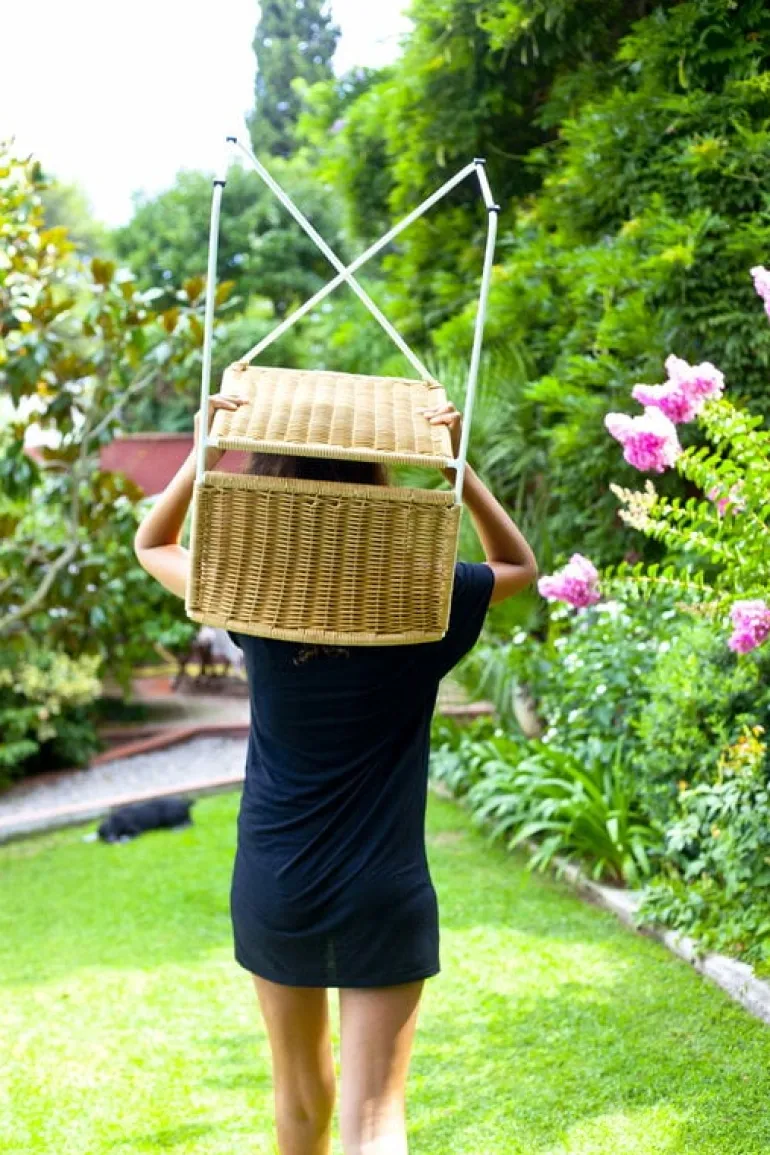 Stolen Ramón från Santa & Cole, formgiven av Ramón Bigas 1975, är en stol med metallram och en sits i tålig, flätad konstrotting. Den här lätta stolen kan användas både inomhus och utomhus, och designen utstrålar ledighet, bekymmerslösa sommarvibbar och spansk charm. Ramón-stolen fungerar lika bra inne vid matbordet som ute på altanen som matstol. Den stapelbara konstruktionen gör det enkelt att förvara stolarna, även i små utrymmen.