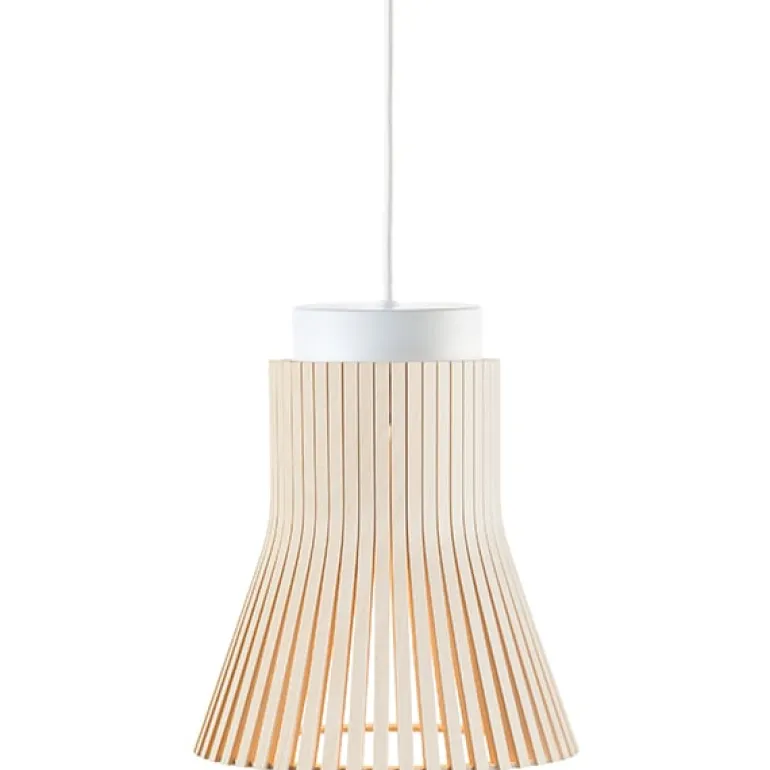 Pendellampan Petite 4600 från Secto Design drar blickarna till sig med sin graciösa träskärm, som filtrerar ljuset mjukt och skapar en trevlig atmosfär i alla rum. Tack vare lampans blygsamma storlek går det lika bra att placera Petite 4600 i ett fönster, såväl som hänga upp den över ett matbord eller i taket i sovrummet.