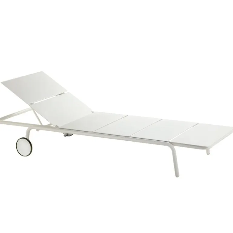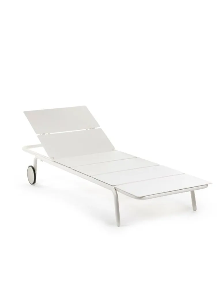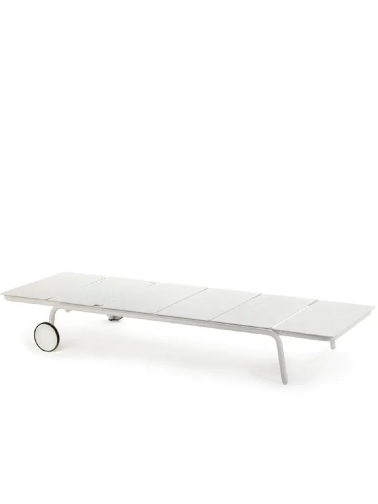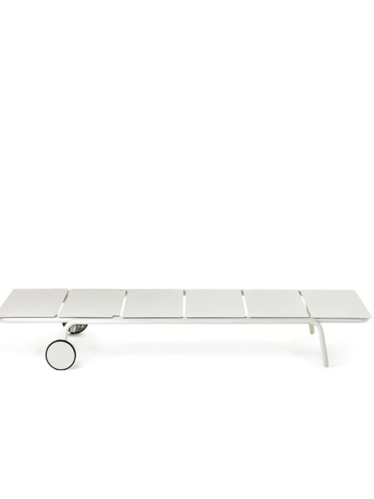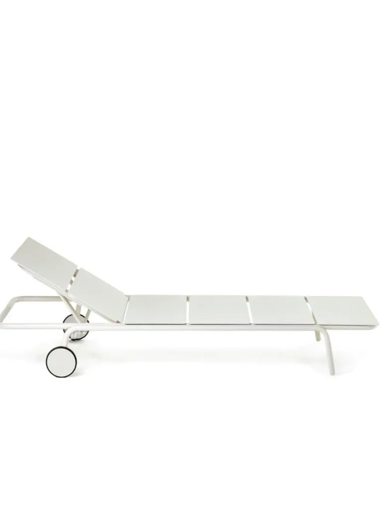 Solsängen August från Serax är det perfekta tillskottet till alla utomhusloungeområden. Den minimalistiska solsängen är utrustad med hjul och en justerbar ryggstöd som gör att du kan njuta av solstrålarna på din favoritplats, i din favoritposition.