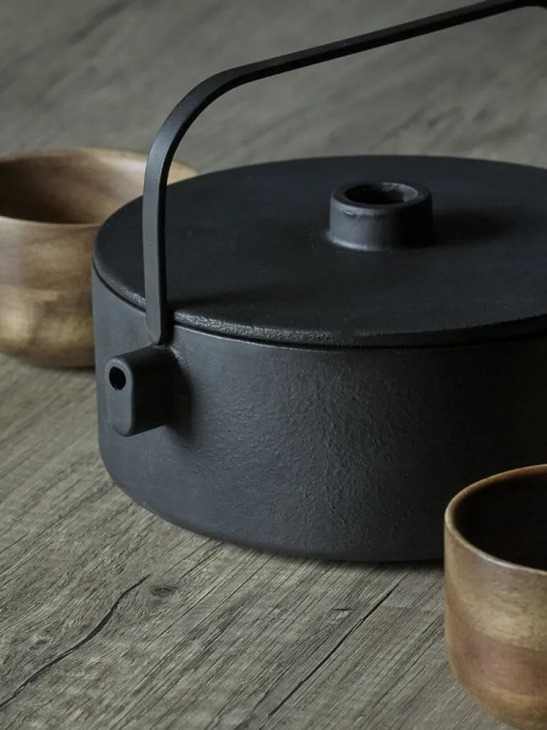 Tekannan Collage från Serax har inspirerats av den rena och enkla estetiken i japansk formgivning. Den är gjord av slitstarkt gjutjärn och har en perfekt balans mellan form, material och proportioner som gör den till ett litet konstverk i köket. Formgivarna till tekannan Collage är Giel Dedeurwaerder och Brent Neve.