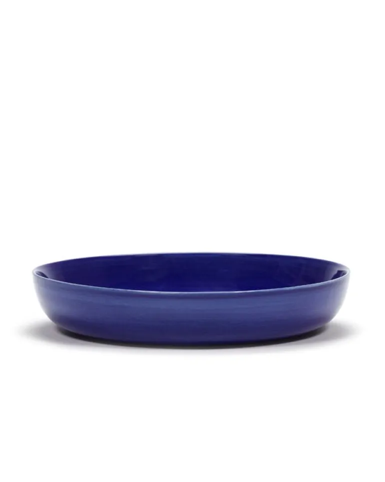 Serax’s Feast djupa tallrik är dekorerad med en djupblå färg och ett cirkulärt mönster bestående av vita linjer av varierande längder och tjocklekar. Den charmiga tallriken passar både för soppa och pasta, och kan också användas som en serveringsskål vid middagsbjudningar. Paketet innehåller två tallrikar.