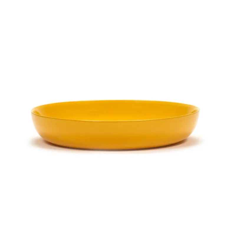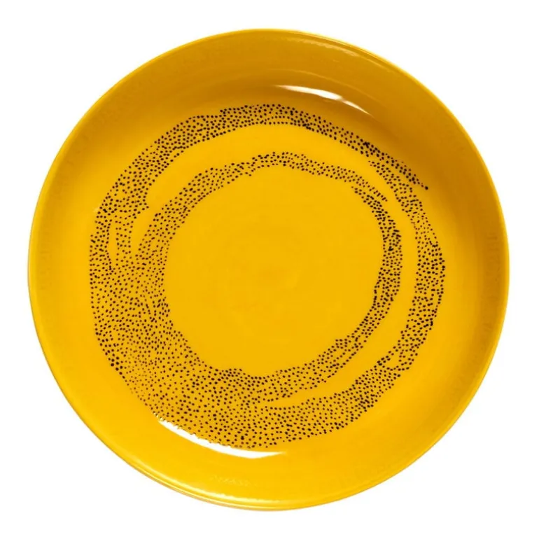 Serax’s Feast djupa tallrik är dekorerad med ett cirkulärt mönster bestående av oregelbundna små svarta prickar. Den charmiga gula tallriken passar både för soppa och pasta, och kan också användas som en serveringsskål vid middagsbjudningar. Paketet innehåller två tallrikar.