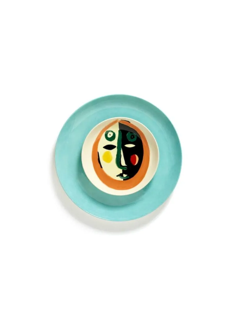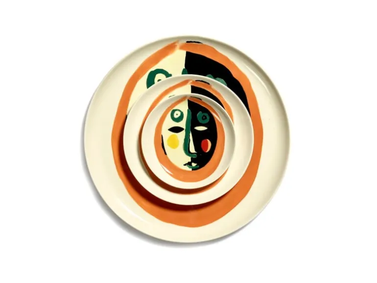 Serax Feast-tallrik är dekorerad med ett abstrakt ansikte, som verkar antingen le eller undra – betydelsen av uttrycket beror helt på betraktaren! Den lekfulla tallriken är idealisk för att servera godis, nötter, frukt och andra små snacks. Paketet innehåller fyra små tallrikar.