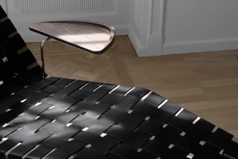 Det här eleganta sidobordet är avsett till schäslongen AV Egoist från Sibast. Sidobordet, som sätts fast i sidan av schäslongen, består av ett stag i mässing och en vacker bordsskiva i massivt trä, där det finns lagom med plats för exempelvis en god bok och en kopp te eller kaffe.