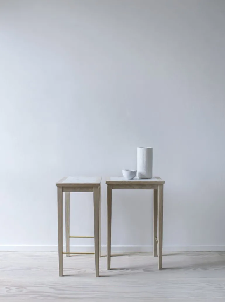 Sibast No 1 sidobordet består av en elegant ekram som kompletterats med en supportande struktur av mässing och en bordsskiva av vit marmor som ger en lyxig känsla till bordets minimalistiska design. Tack vare den smidiga och eleganta designen passar det 56 cm höga bordet till flera olika utrymmen och användningsområden; placera den i hallen eller entrén till förvaring av nycklar, växel och andra småsaker eller skapa en stilig möbel med en bordslampa eller vacker vas i vardagsrummet.