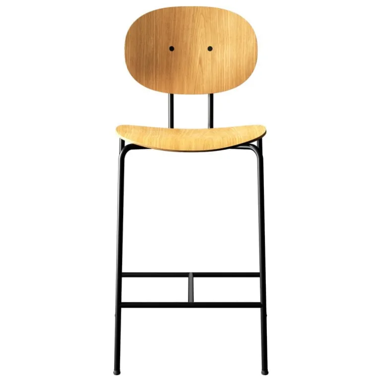 Sätesmaterialet i Piet Hein barstolen är böjt träfaner och de dynamiskt positionerade, lätt lutande benen är gjorda av stål. Tack vare den smidiga men ändå robusta designen kan Piet Hein-barstolarna användas lika väl i hemmet som på restauranger.