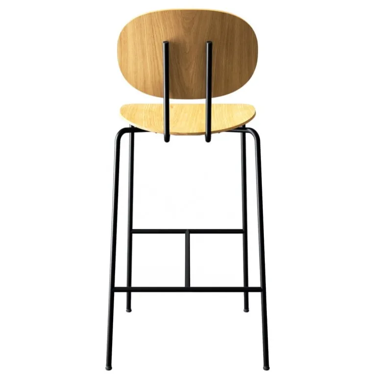 Sätesmaterialet i Piet Hein barstolen är böjt träfaner och de dynamiskt positionerade, lätt lutande benen är gjorda av stål. Tack vare den smidiga men ändå robusta designen kan Piet Hein-barstolarna användas lika väl i hemmet som på restauranger.