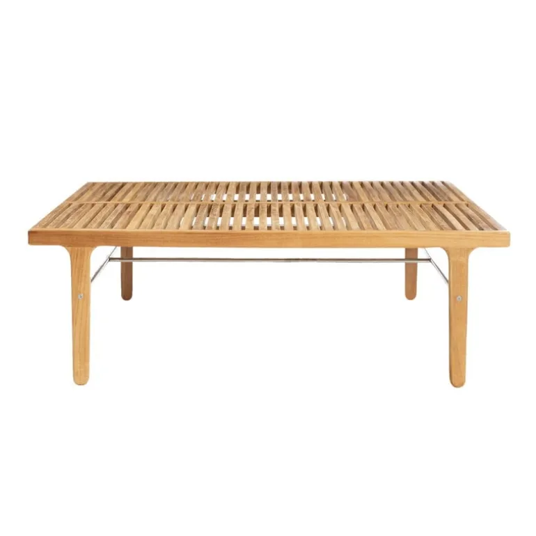 RIB-bordet är tillverkat av obehandlad teak av hög kvalitet. Med tiden och genom användning kommer loungebordet få en ännu mer utpräglad stil: teak är ett klassiskt utomhusmaterial som åldras på ett vackert sätt och får en underbar patina med en sofistikerad, silvergrå ton. Den som tycker bättre om den genuina, gyllene nyansen kan vara lugn, eftersom originalfärgen på möbeln kan bibehållas genom att den behandlas med lämpligt impregneringsmedel för teak.