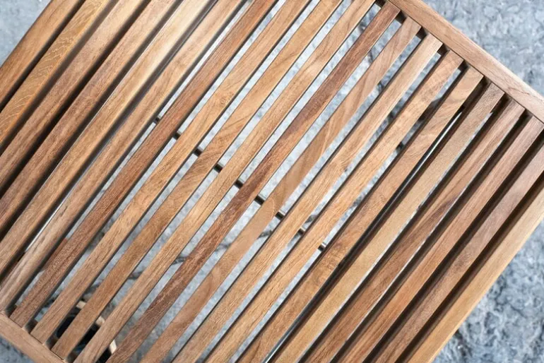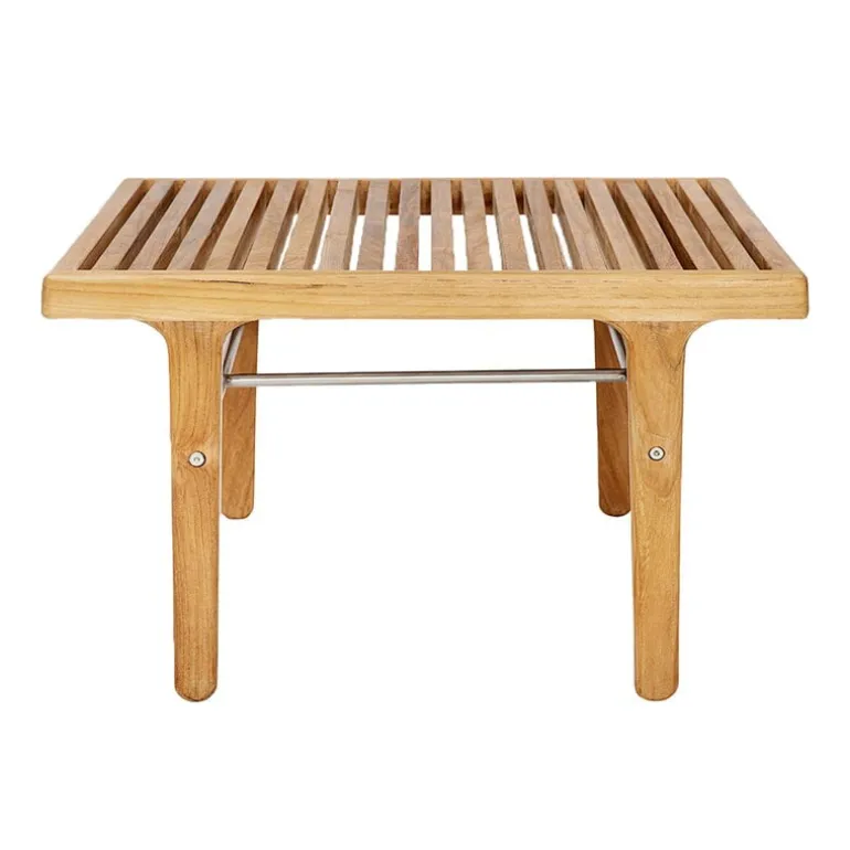 RIB-bordet är tillverkat av obehandlad teak av hög kvalitet. Med tiden och genom användning kommer loungebordet få en ännu mer utpräglad stil: teak är ett klassiskt utomhusmaterial som åldras på ett vackert sätt och får en underbar patina med en sofistikerad, silvergrå ton. Den som tycker bättre om den genuina, gyllene nyansen kan vara lugn, eftersom originalfärgen på möbeln kan bibehållas genom att den behandlas med lämpligt impregneringsmedel för teak.