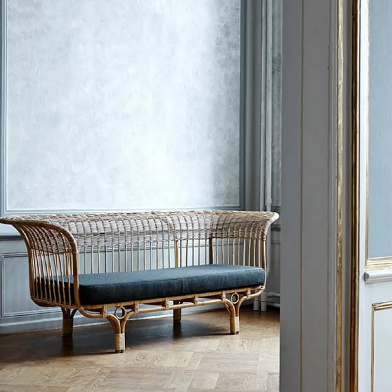 Sika-Designs soffa Belladonna ritades av den italienske arkitekten och designern Franco Albini 1951. Den eleganta soffan är gjord av flätad Manau- och Tohitirotting, och har en bekväm, stoppad dyna. Rottingens lätthet bidrar med en luftig känsla till alla rum, och tack vare det snygga ryggstödet kommer Belladonna att ta sig väl ut även centralt placerad i rummet. Belladonna ingår i Sika-Designs kollektion Icons, som innehåller rottingklassiker från några av 1900-talets mest framstående formgivare.