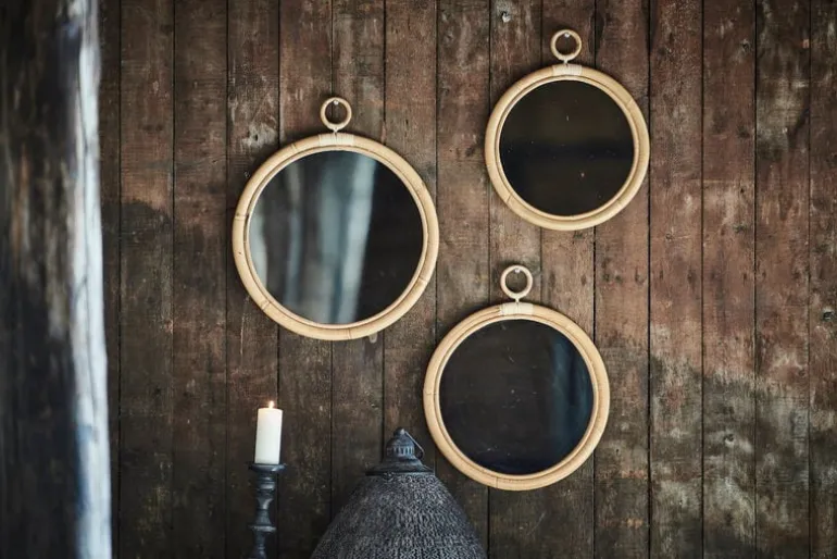 Sika-Designs spegel Ella ingår i Originals-kollektionen med rottingmöbler och accessoarer från 1950- och 1960-talet. Ella-spegelns ram är tillverkad av handböjd rotting, vilket ger spegeln en lätt och organisk karaktär, och den har en liten rund ögla för att hänga upp spegeln på väggen i badrummet, hallen eller sovrummet.