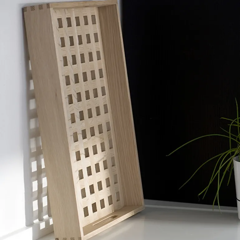 Brickan Fionia, som lanserades 1982, var Skageraks första accessoar någonsin och har sedan dess blivit en riktig Skagerak-klassiker. Brickan i teakträ har en vacker rutnätstextur och snidade handtag som ger ett bra grepp. Tack vare sin rymliga men balanserade storlek är Fionia perfekt för både större och mindre uppläggningar. Fionia designades av Søren Refsgaardt.