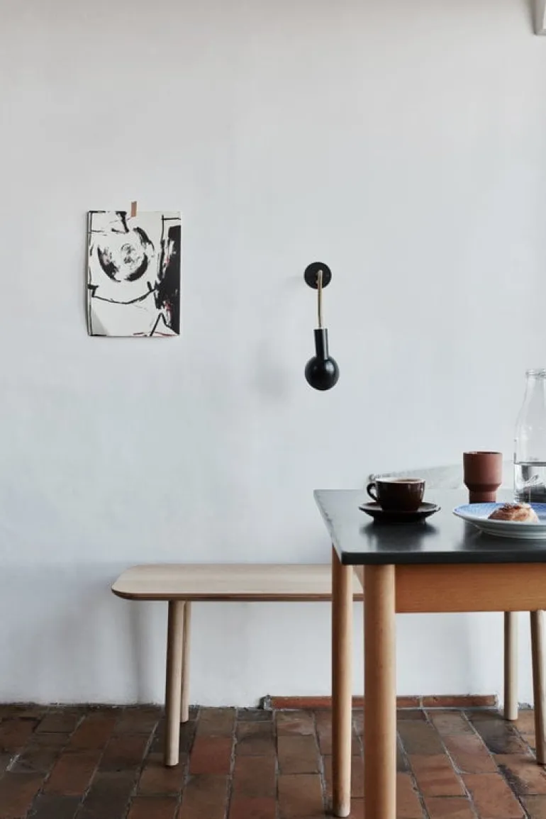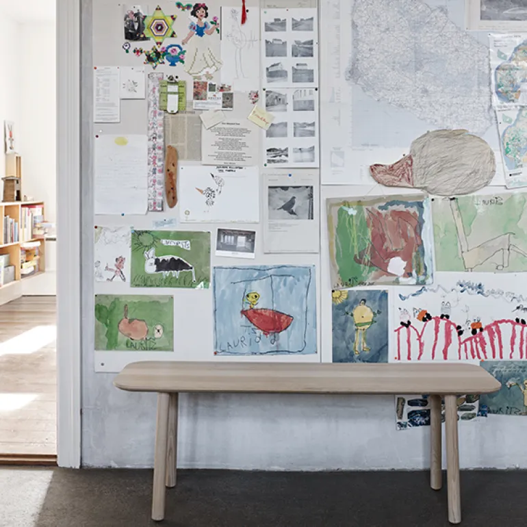 Skageraks Hven är en mångsidig träbänk som har en inbjudande, luftig design tack vare sina runda ben och hörn. Bänken är tillverkad av massiv FSC-certifierad ek, har ett vackert naturligt mönster och har måtten 123 cm x 36 cm.