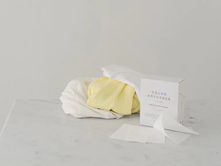 Med Steamerys färgabsorberare kan du tvätta färgade och ljusa kläder tillsammans utan att behöva vara rädd för missfärgning. Som namnet föreslår absorberar arken lösa färgpigment och hindrar dem från ta sig till andra textilier i tvättmaskinen. Hur magiska de livräddande Colour Absorbers än låter kan de inte ta upp 100 % av alla färgpigment – därför rekommenderar vi dig inte att tvätta dina ljusaste och mörkaste plagg ihop, eller att kasta i nya röda strumpor i samma tvätt som din vita favorittröja. Nya kläder ska tvättas med liknande färger minst fem gånger innan de blandas med andra färger.
