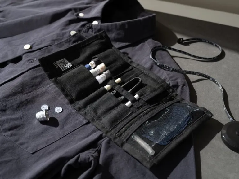 Steamerys sykit är designat för att hjälpa dig att ta hand om dina kläder själv. Kitet, som skapats i samarbete med professionella skräddare, innehåller alla nödvändiga verktyg och tillbehör för att laga kläder, förpackade i ett snyggt rullbart fodral som du enkelt kan packa i en resväska när du reser, till exempel.
