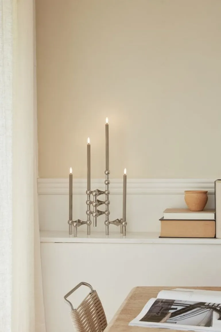 STOFF LED-ljus är ett bekymmerslöst alternativ för att skapa en mysig atmosfär i ditt hem, med en mjukt flackande, elektronisk låga. STOFF LED-ljusen är ett säkrare alternativ till traditionella ljus. De är smalare än de flesta andra ljus, vilket gör dem passande för de klassiska STOFF Nagel-ljushållarna. Tack vare den patenterade 3D-lågan flackar ljuset lika inbjudande och mysigt som ett vanligt ljus. Beläggningen av paraffinvax ger ljuset en ytterligare känsla av äkthet.