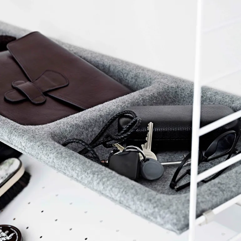 String-skålhyllan kan användas till String Systems golvpaneler. Hyllan är uppdelad i 3 fack och är perfekt lämpad till förvaring och sortering av alla småsaker som ligger utspridda i hemmet. Hyllan är 78 cm bred och 30 cm djup.