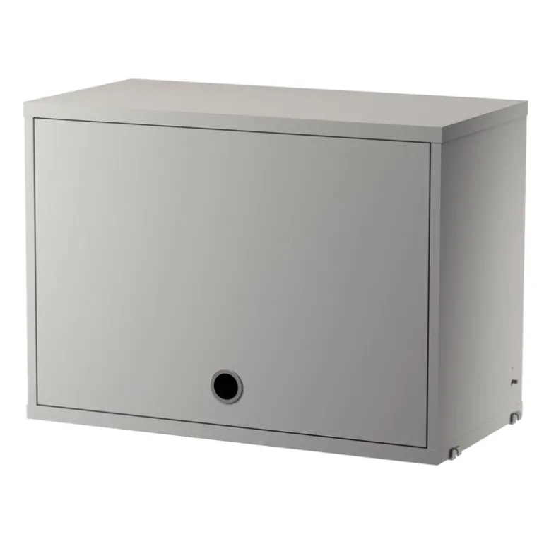 String-skåpet med vipplucka kompletterar hyllsystemet String på ett elegant och praktiskt sätt. Skåpet, som passar till alla 30 cm djupa String-paneler, har en skåplucka som öppnas uppåt samt en justerbar hylla. Det här praktiska skåpet med vipplucka är lika väl lämpat för att hålla ordning och reda på bordsporslinet i köket, som till förvaring av accessoarer och kläder i hallen.