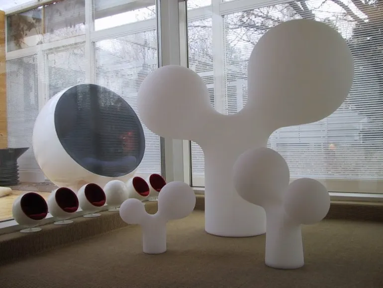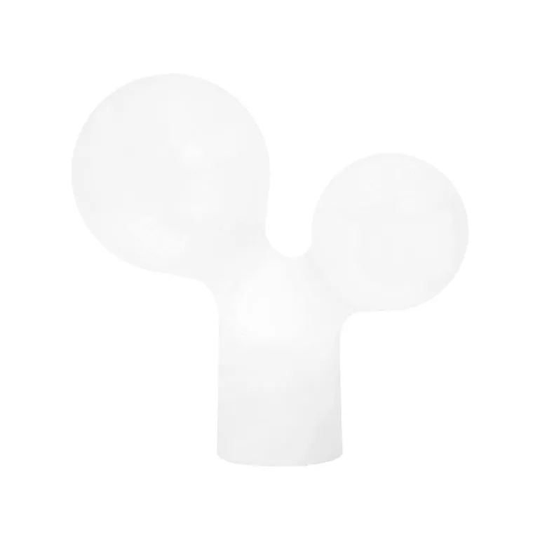 Lampan Double Bubble är ett helt klart ett mästerverk, designat av den hyllade finska designern Eero Aarnio år 2003. Double Bubble, eller Tupla Kupla som den heter på finska, skapades ursprungligen av blåst glas. Den blev senare tillverkad i gjuten plast för att göra den mer hållbar och säkerställa en jämn ljusfärg. För att kunna lysa upp sin kurviga form jämnt och smidigt, har Double Bubble tre ljuskällor: en i varje bubbla och en i lampfoten. Lampan trivs mycket bra på en skänk eller ett sidobord, men många väljer också att använda Double Bubble som fönsterbelysning.