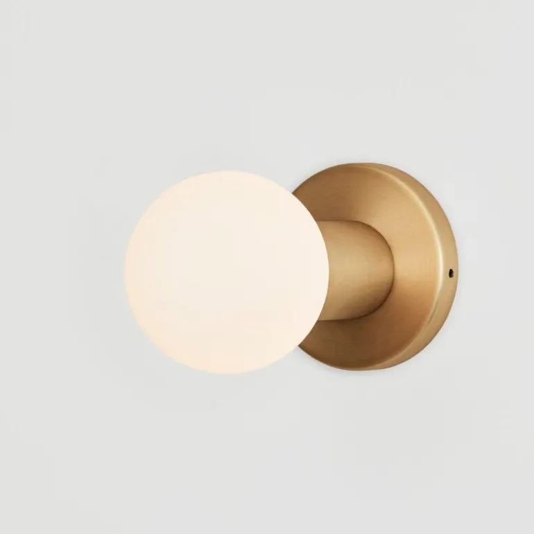 Vägglampan Lochan kombinerar en enkel och raffinerad estetik med mässingens själfulla, varma glans. Armaturen kan monteras på väggen eller i taket och den har en IP44-klassificering, vilket gör den lämplig för fuktiga platser som badrummet eller till och med utomhus. Den eleganta lampan Lochan är lika lätt att föreställa sig i taket på ett litet badrum som den är på varje sida av en spegel i ett rymligt hemmaspa. Den minimalistiska badrumslampan levereras utan glödlampa, så du kan para ihop den med den ljuskälla du väljer – till exempel från Talas egen skulpturala urval.