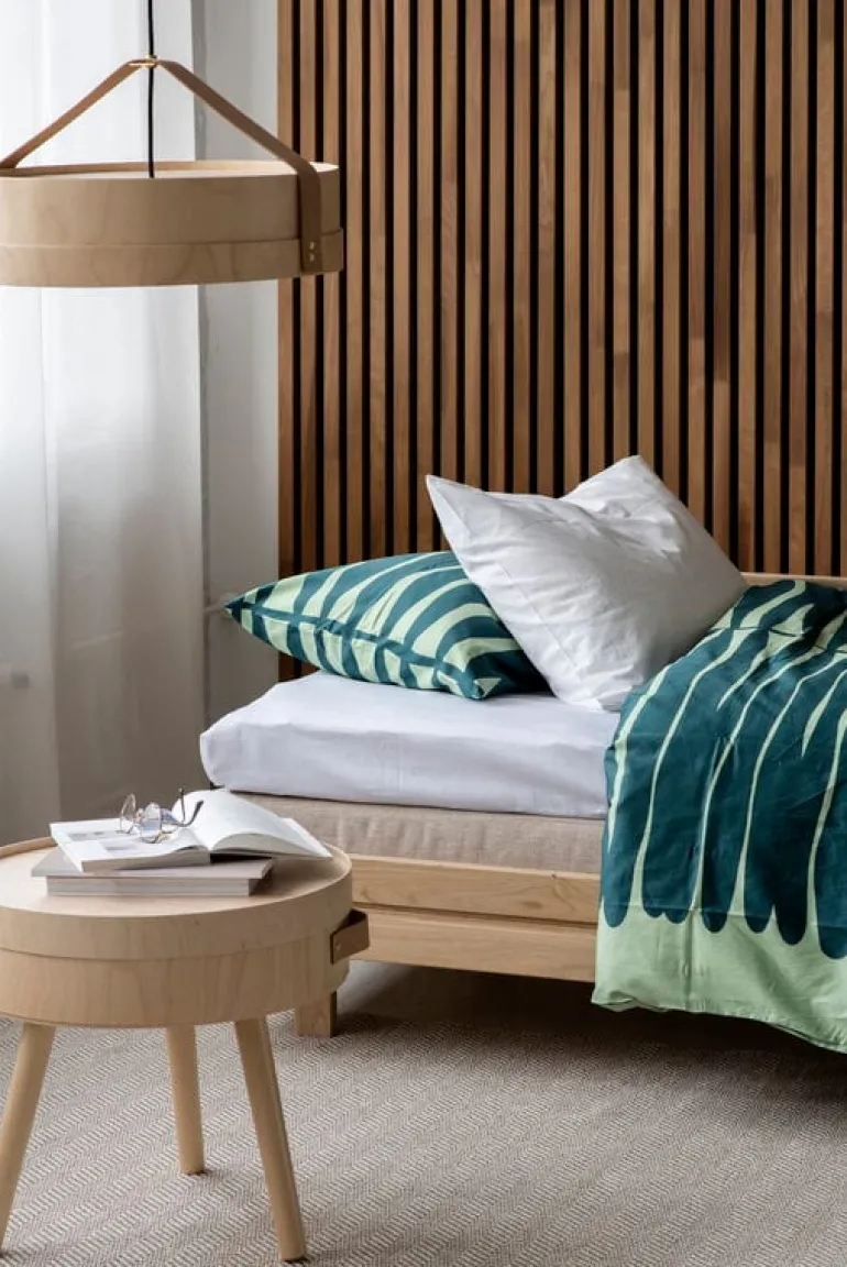 Tapio Anttila Collections pendellampa Aski ger väggar och tak ett varmt sken med sin lådliknande design. Namnet kommer från det finska ordet för låda, och Aski kombinerar naturliga kanter i björkträ med en vit diffusor som mjukar upp även det starkaste ljus för en bekväm, bländfri effekt. Den dimbara pendellampan är färdig med återvunna läderremmar som ger en genomtänkt touch till designen.
