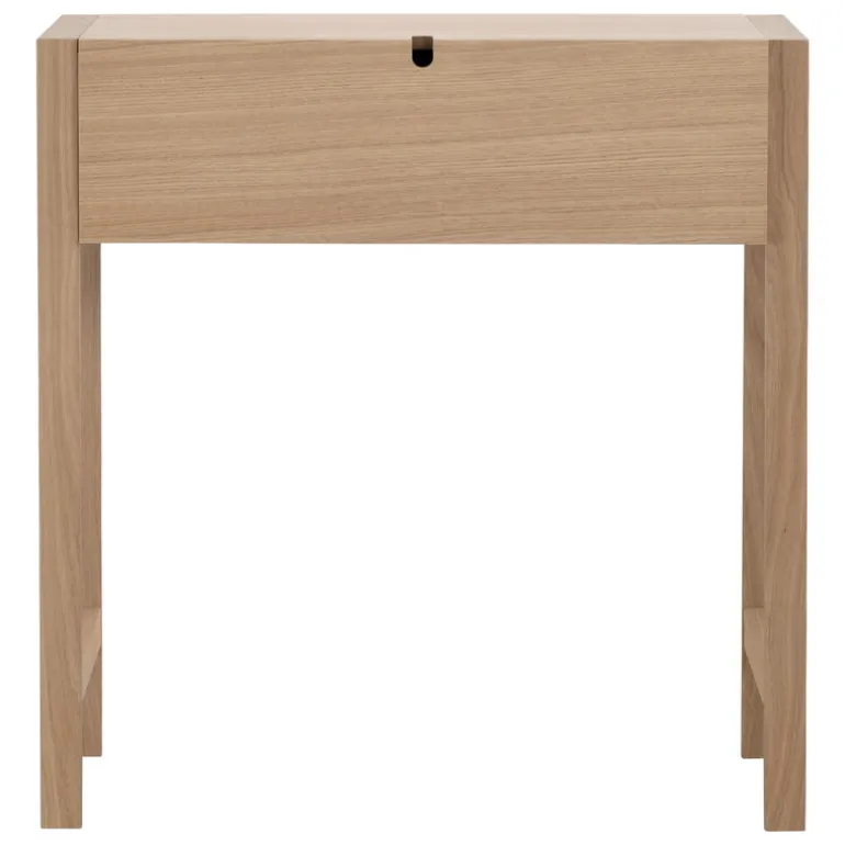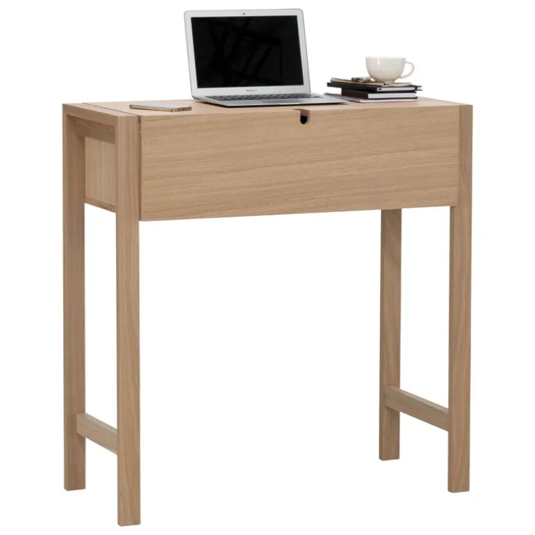 Jat-ko arbetsstation kan karaktäriseras som en modern tolkning av traditionella skrivbord. Utrustad med gasfjädrar har skrivbordet ett öppningsbart lock och en fällbar arbetsyta på framsidan. När det används som en stående arbetsstation är höjden på arbetsytan 100 cm, och det medföljande trästödet gör att du kan höja höjden till 112 cm. När du arbetar sittande är höjden på arbetsytan 72 cm.