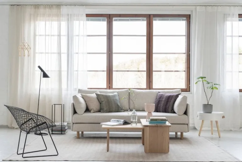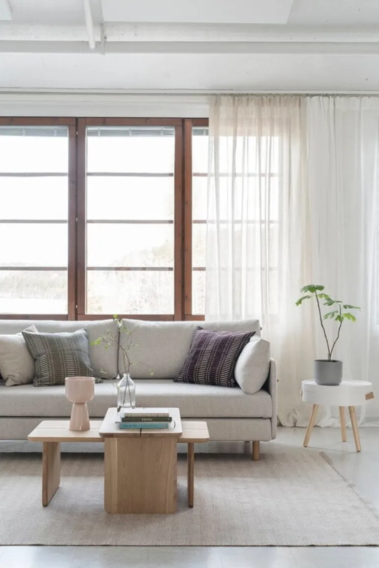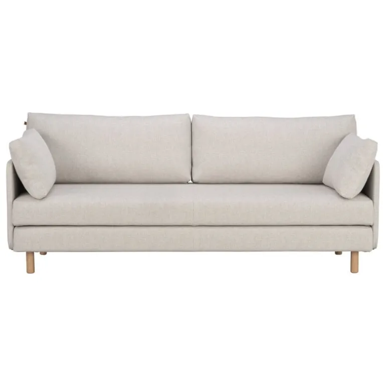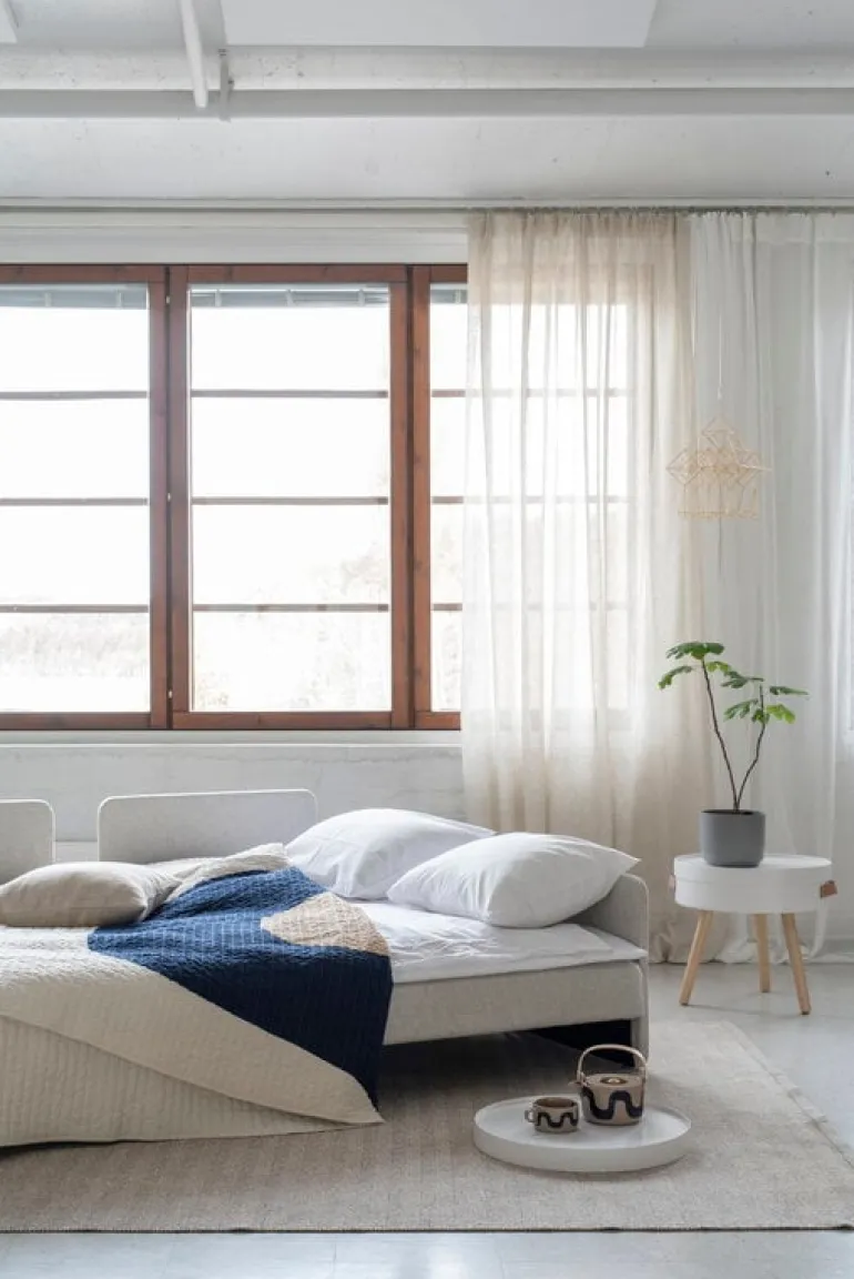 Bäddsoffan ON2 Fabric i Tapio Anttila-kollektionen döljer mer än du kanske anar utifrån sett. Den minimalistiska bäddsoffan har vackert utformade detaljer i ek och läder. Björkramen och madrasserna kan göras om till två separata bäddar genom att man helt enkelt lyfter upp den övre delen av ramen och ställer den på golvet.