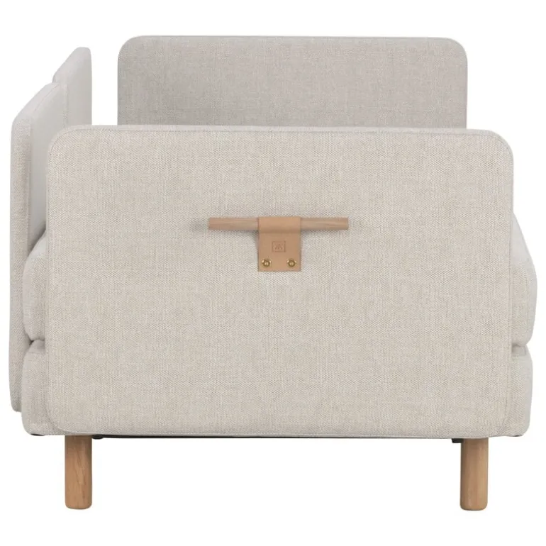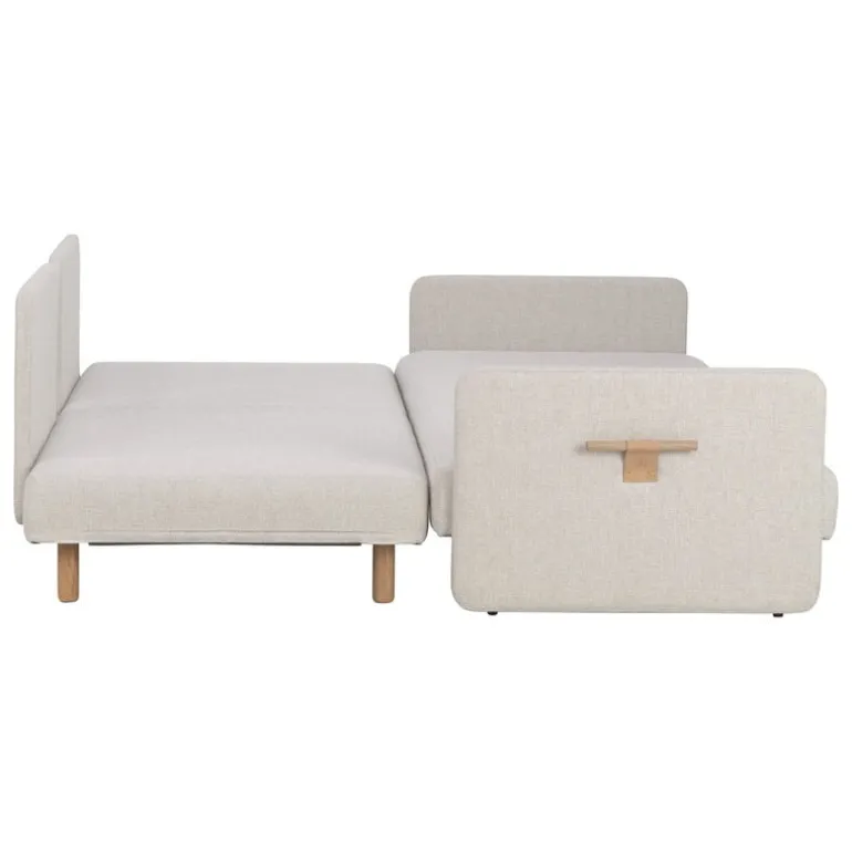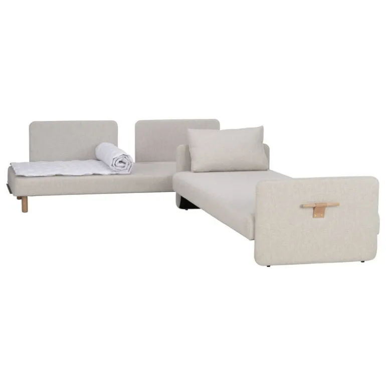 Madrasserna till de båda sängarna göms innanför kuddarna som är klädda i ett vackert vitt tyg. Storleken på respektive säng är komfortabla 80 x 200 cm, och bäddarna kan även skjutas ihop till en enda mysig queen size-säng. Både kuddarna och ramen har avtagbara överdrag i tyg.