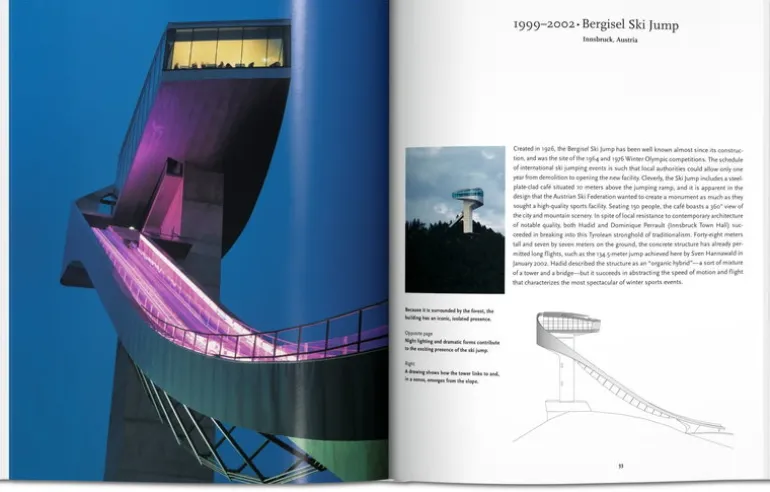 Zaha Hadid som publicerades av Taschen dyker in i karriären och de stora byggnaderna som den revolutionära irakisk-brittiska arkitekten gjort, från de skarpt vinklade designerna till hennes mer flytande arkitektur. Trots att hon vunnit kritikernas ros och flera priser var det många av Hadids ritningar som aldrig byggdes – några av Hadids mest utmanande och futuristiska designer ansågs till och med omöjliga att bygga. Boken presenterar Zaha Hadid som en konstnär som ville bryta gamla regler och skapa sitt egna moderna universum. Boken, skriven av de konsthistorikern Philip Jodidio, är en del av serien Basic Architecture från Taschen som presenterar internationellt erkända arkitekters liv och verk med ungefär 120 fotografier, skisser och utkast. Serien har redigerats av tyska konsthistorikern Peter Gössel.