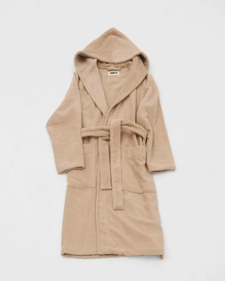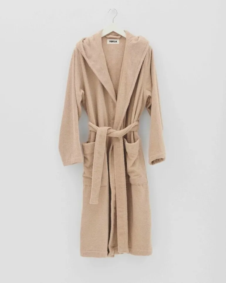 Teklas badrock med huva ger en känsla av bekvämlighet och lyx och passar perfekt efter bad eller bastubad. Den Oeko-Tex-certifierade badrocken är tillverkad av extrakammad ekologisk bomull, vilket gör den särskilt mjuk och slitstark samt ger den bra uppsugningsförmåga. Unisex-badrocken är något stor i storleken, vilket gör den bekväm och avslappnad att ha på sig. Dessutom håller den stora huvan dig varm när du själv håller på att bli sval.