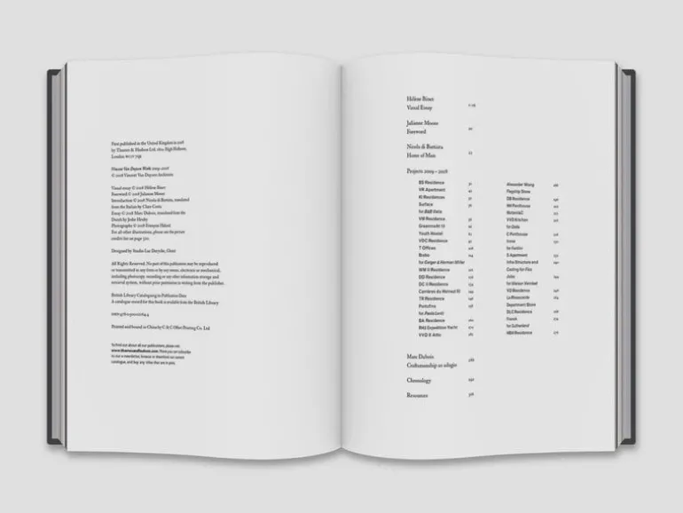 Vincent Van Duysen Works 2009-2018, utgiven av Thames & Hudson, följer den belgiska arkitekten Vincent Van Duysen, känd för sin asketiska estetik – boken täcker Van Duysens verk med allt från möbler och design av privata hem till interiörer för båtar och offentliga rum. Upptakten till verket skrevs av Van Duysens personliga vän: skådespelaren och Oscarsvinnaren Julianne Moore. Bilderna av verken togs av de prisbelönta fotograferna Hélène Binet och François Halard.