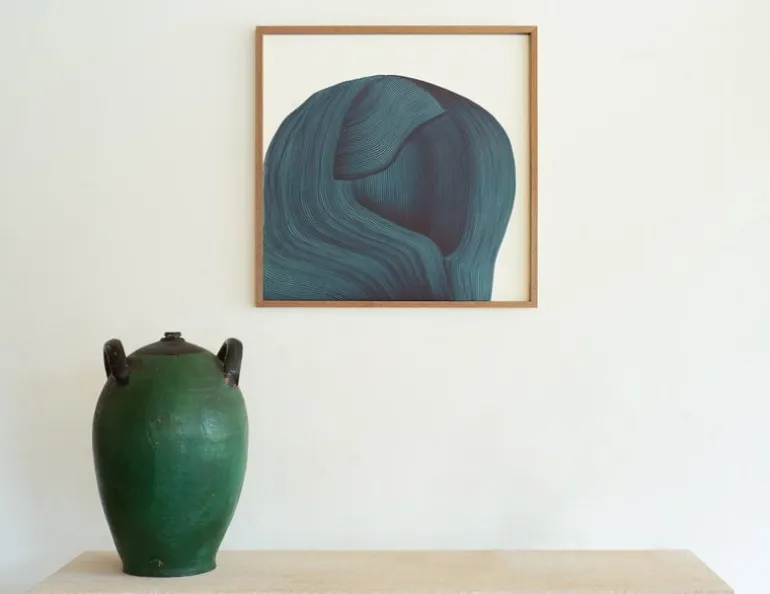 Postern Drawing 4 är en litografi tryckt på Pergraphica Natural Smooth-papper. Papprets släta yta och varma ton kompletterar teckningens jordnära färgskala och lugna atmosfär på ett perfekt sätt.