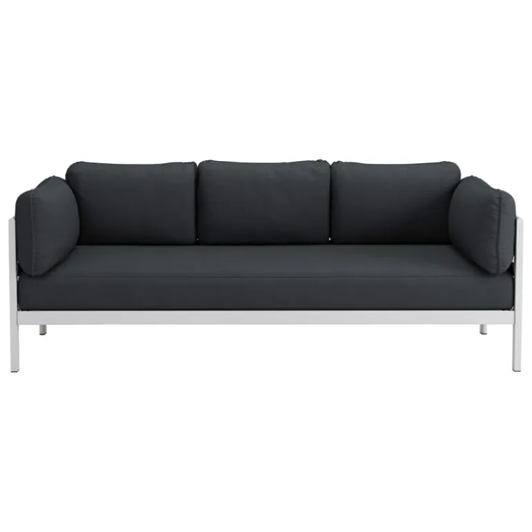 Tillverkad i Europa, är Easy-soffan konstruerad av en enkel stålram – som är praktiskt taget oförstörbar – och tjocka kuddar klädda med Gabriels högkvalitativa tyg i återvunnen polyester. De avtagbara, maskintvättbara överdragen är tillverkade av återvunna plastflaskor, och textilen har tilldelats både Oeko-Tex 100-märkningen och EU Ecolabel. Eftersom de olika delarna av soffan inte är sammanfogade med lim eller häftstift, kan de lätt monteras ned och återvinnas när de till slut når slutet av sin livscykel.