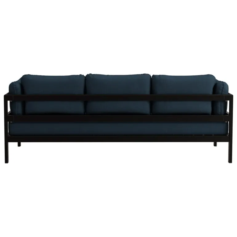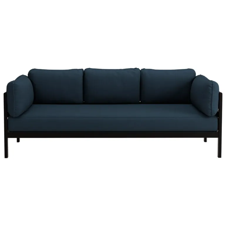 Tillverkad i Europa, är Easy-soffan konstruerad av en enkel stålram – som är praktiskt taget oförstörbar – och tjocka kuddar klädda med Gabriels högkvalitativa tyg i återvunnen polyester. De avtagbara, maskintvättbara överdragen är tillverkade av återvunna plastflaskor, och textilen har tilldelats både Oeko-Tex 100-märkningen och EU Ecolabel. Eftersom de olika delarna av soffan inte är sammanfogade med lim eller häftstift, kan de lätt monteras ned och återvinnas när de till slut når slutet av sin livscykel.